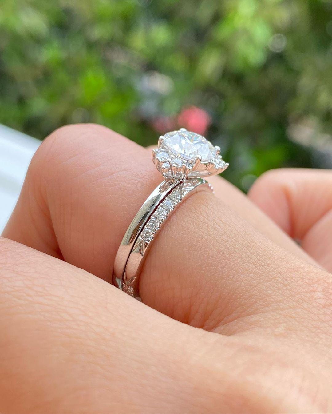 2 TCW Round Cut Cluster Engagement Ring Set, Lab Grown Diamond Wedding Ring Set, Stunning Pave Matching Band, 14k Gold Art Deco Bridal Ring / Wedding Ring Set / Bridal Rings Set / Engagement Ring Set / Moissanite Bridal Set / Round Cut Ring / Fine Jewelry / 14k Gold Band / Matching Band / Gift for Women / Lab Grown Diamond / Pave Matching Band / Unique Ring Set / Eternity Matching Band / Half Eternity Band / Art Deco Ring