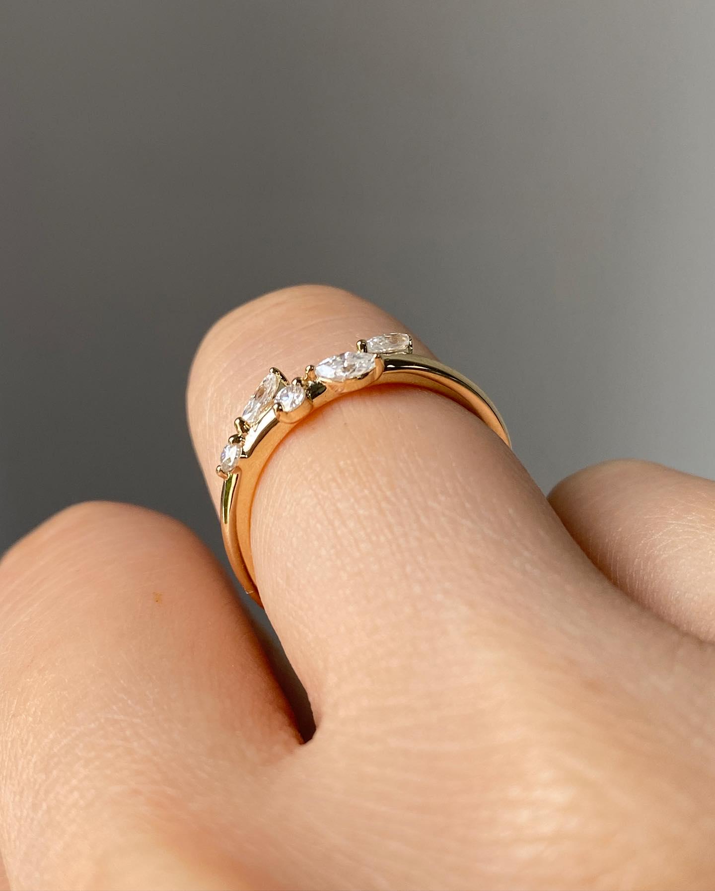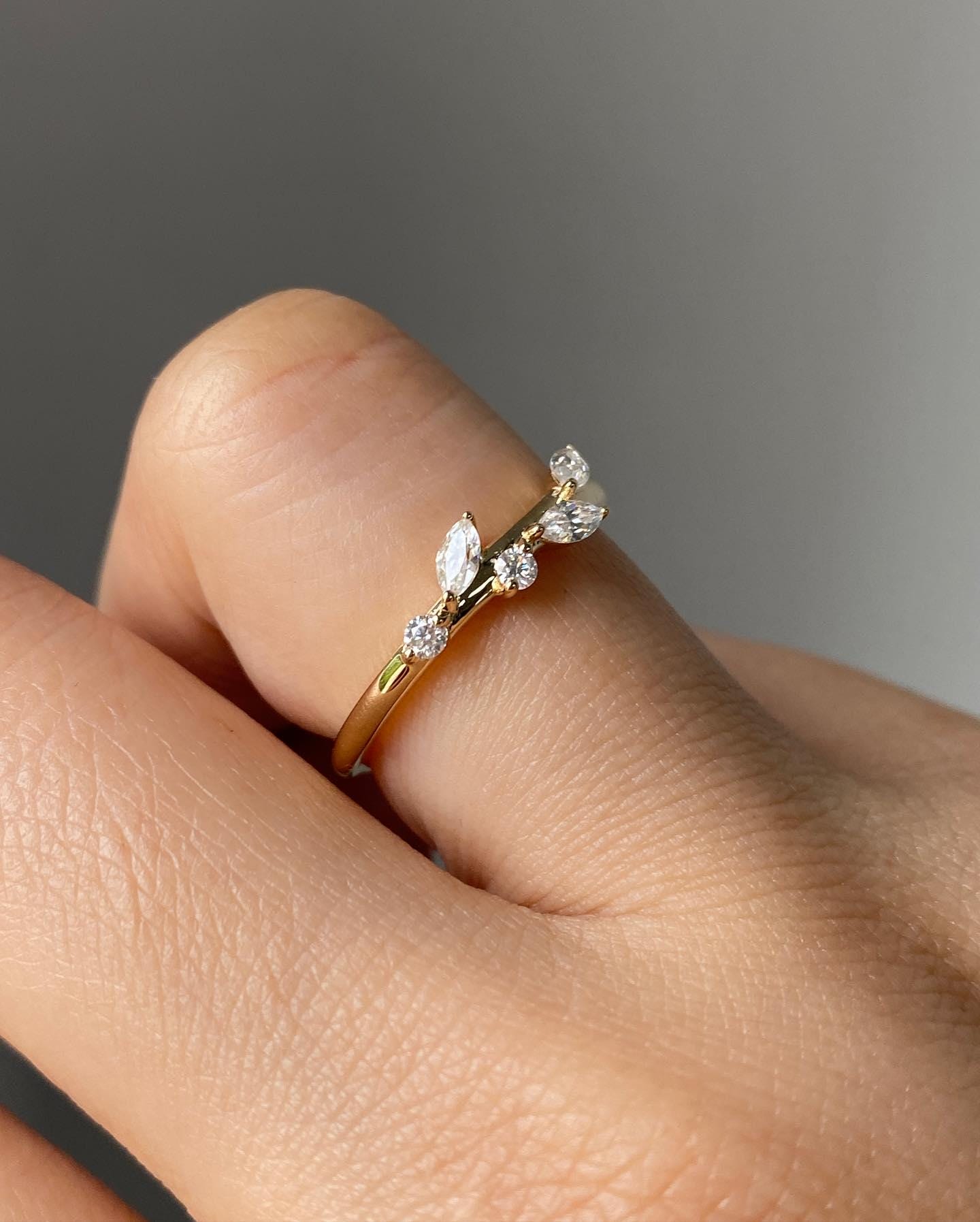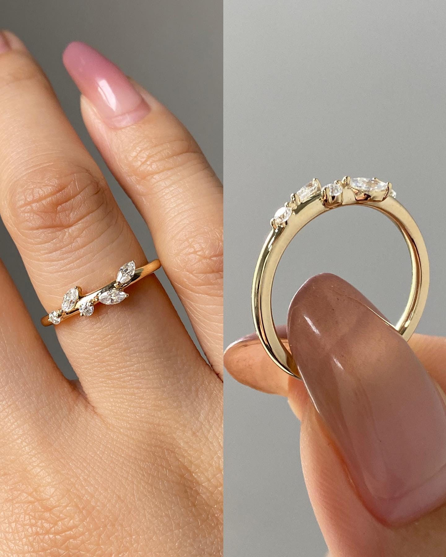 0.3 CT Marquise Cut Lab Grown Diamond, 14k Solid Gold Wedding Ring, Leaf Nature Inspired Promise Band, Minimalist Birthday Gift Ring for Her