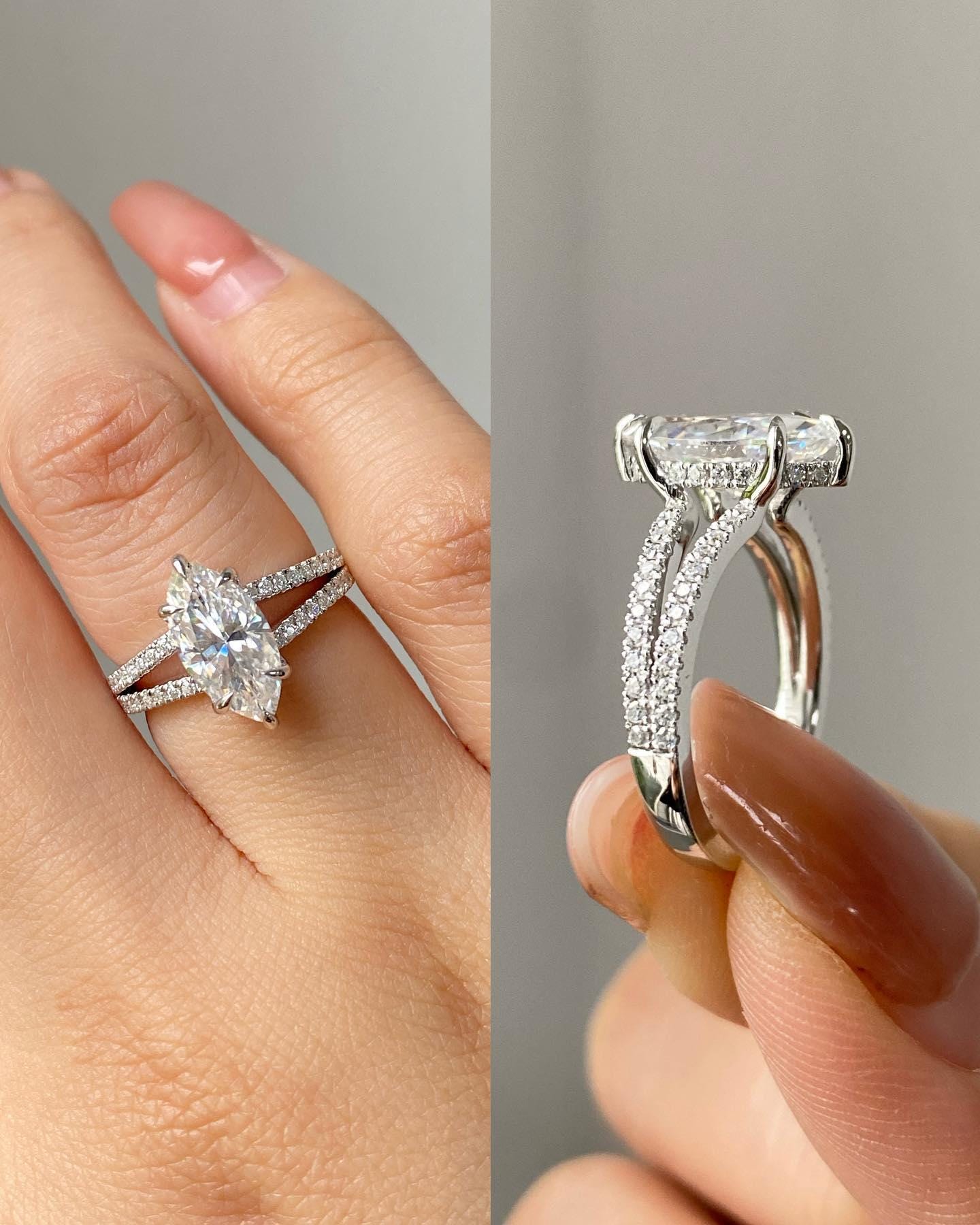2.60 CT Marquise Cut Split Shank Engagement Ring, 14k Solid Gold Wedding Ring, Dainty Fine Jewelry, Art Deco Anniversary Gift for Women