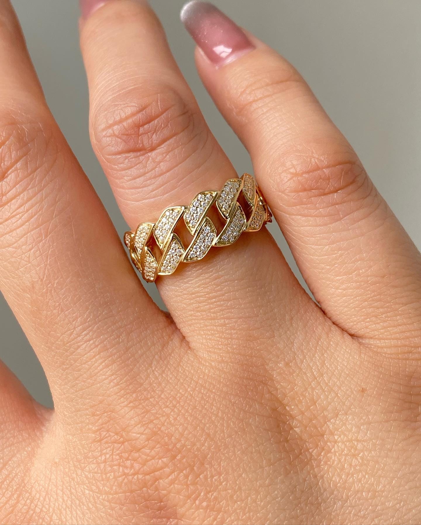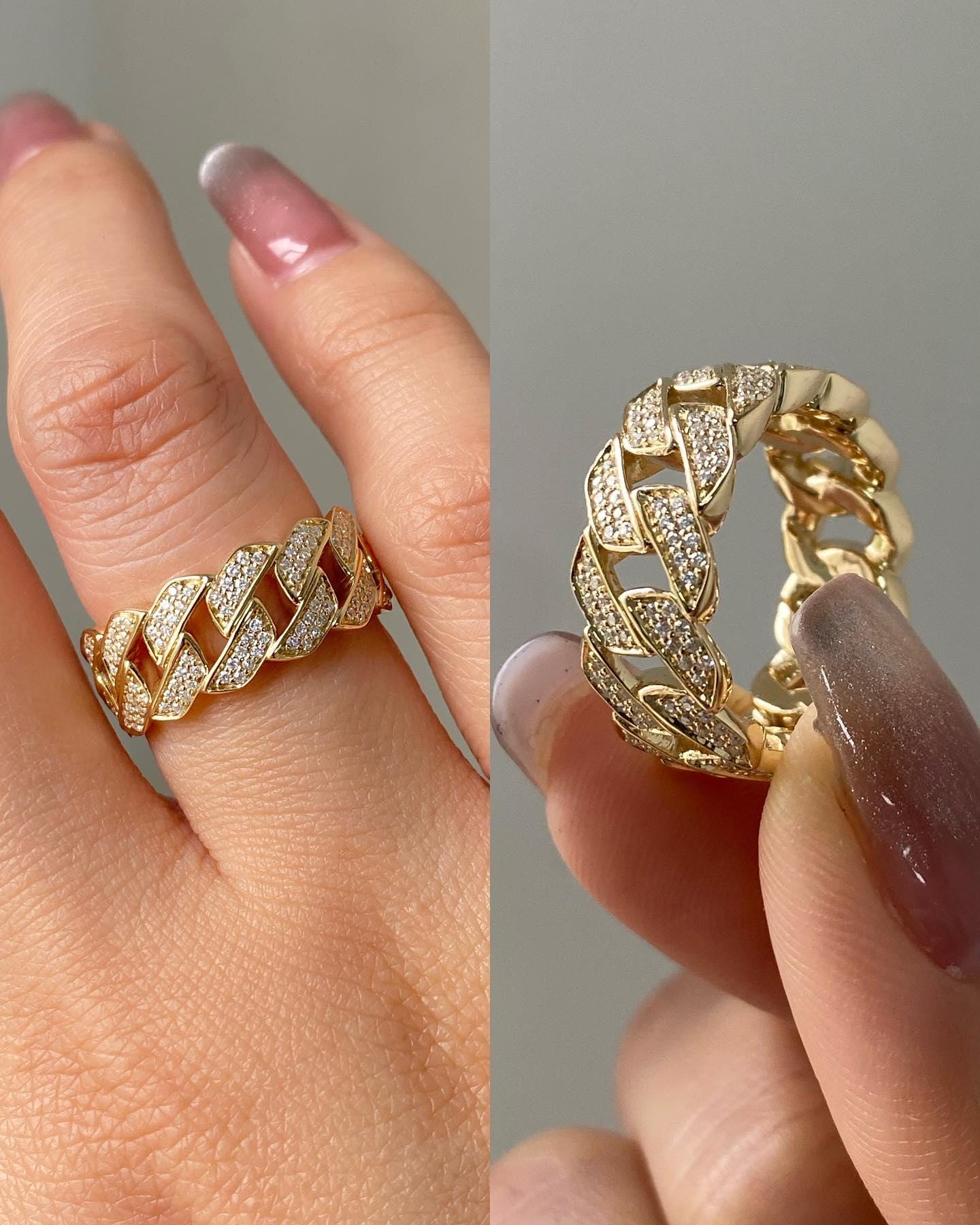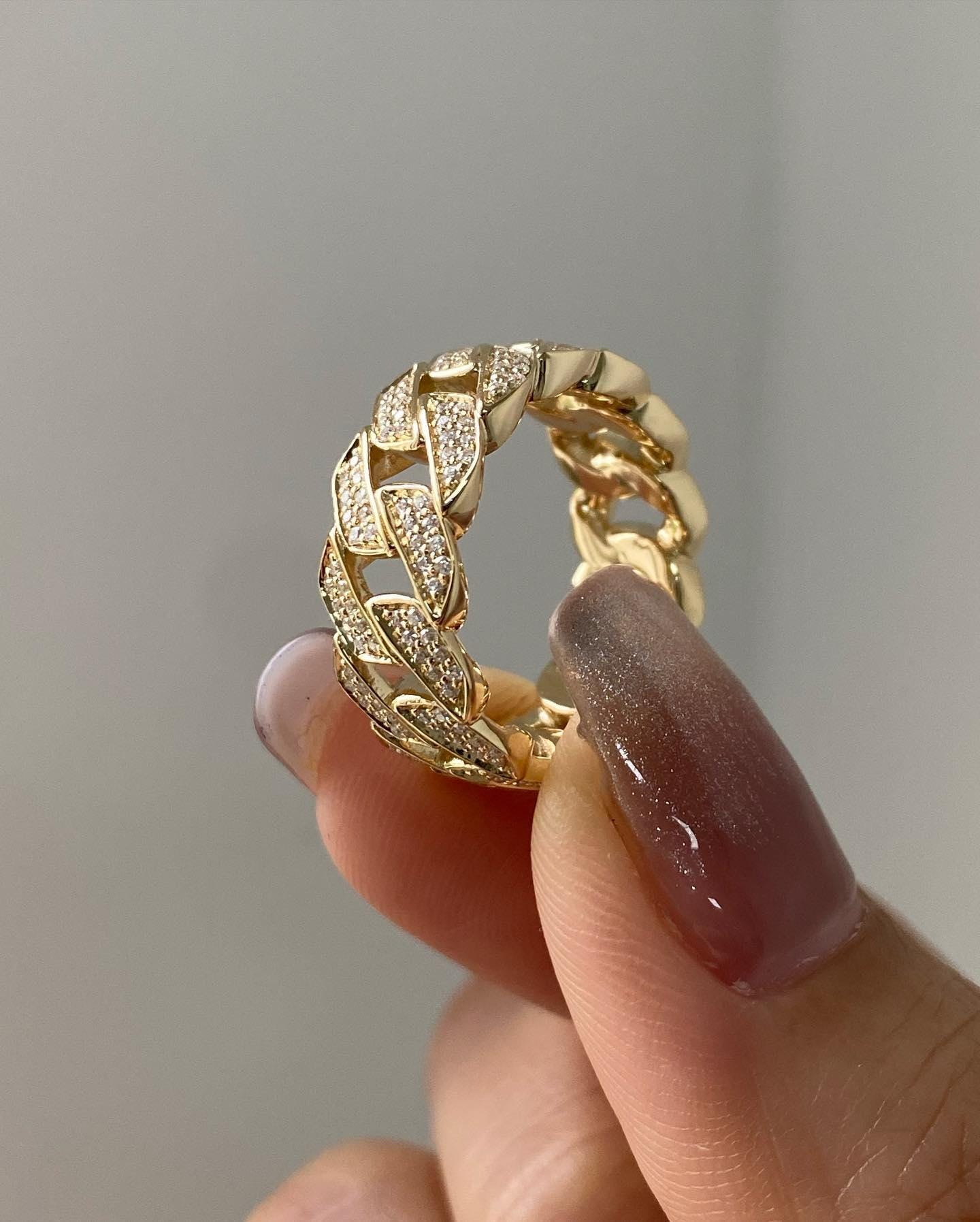 14k Gold Cuban Link Chain Ring, Round Cut Lab Grown Diamond Chain Band, Chunky Gold Promise Ring, Handmade Fine Jewelry, Dainty Ring Gift / Engagement Ring / Wedding Ring / Chain Link Ring / Cuban Link Ring / Solid Gold Ring / Handmade Ring / 14k Solid Gold Ring / 925 Sterling Silver Ring / Valentine Gift / Stunning Ring / Diamond Ring / Promise Ring