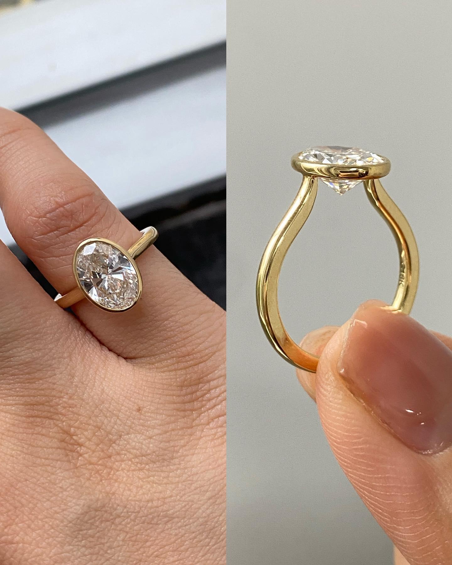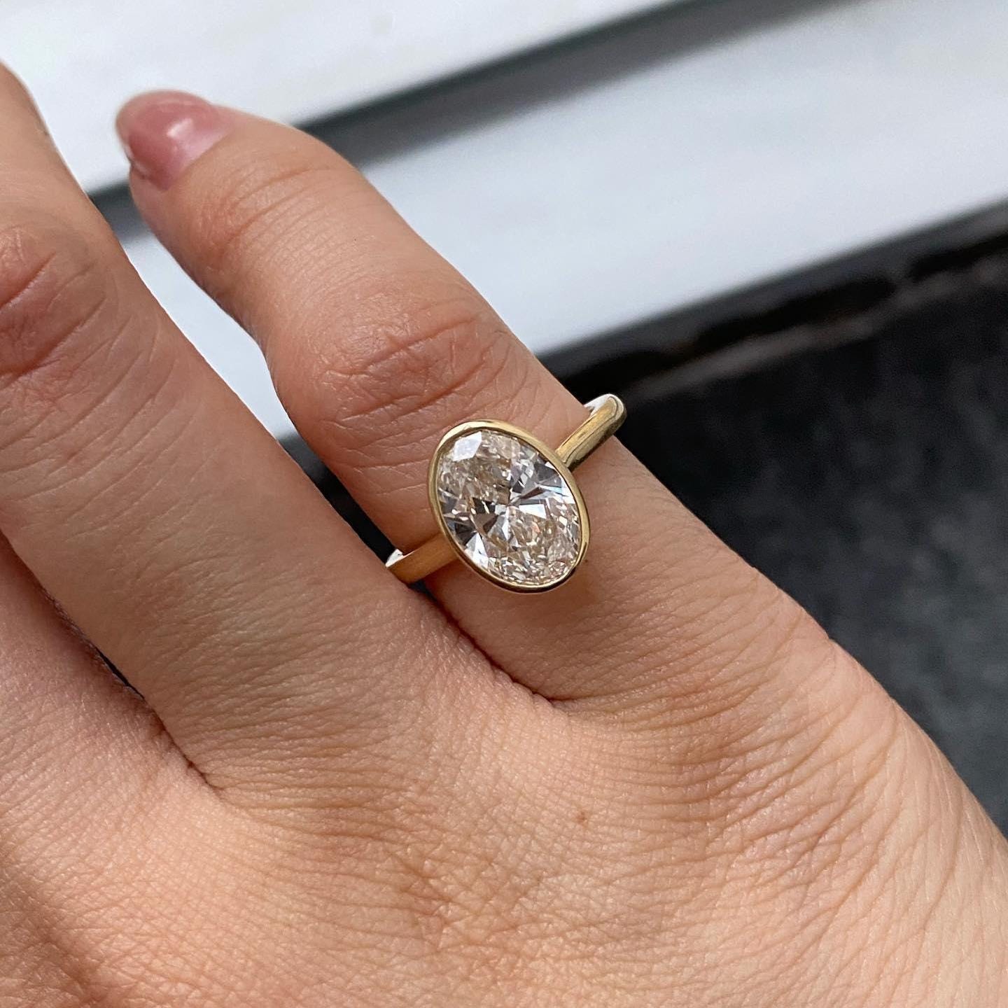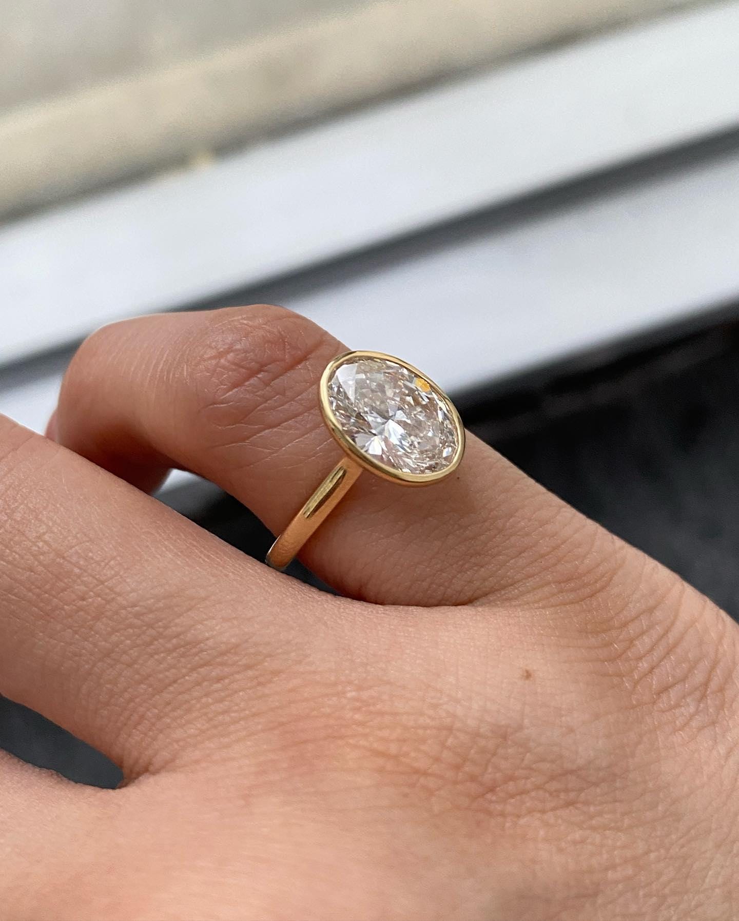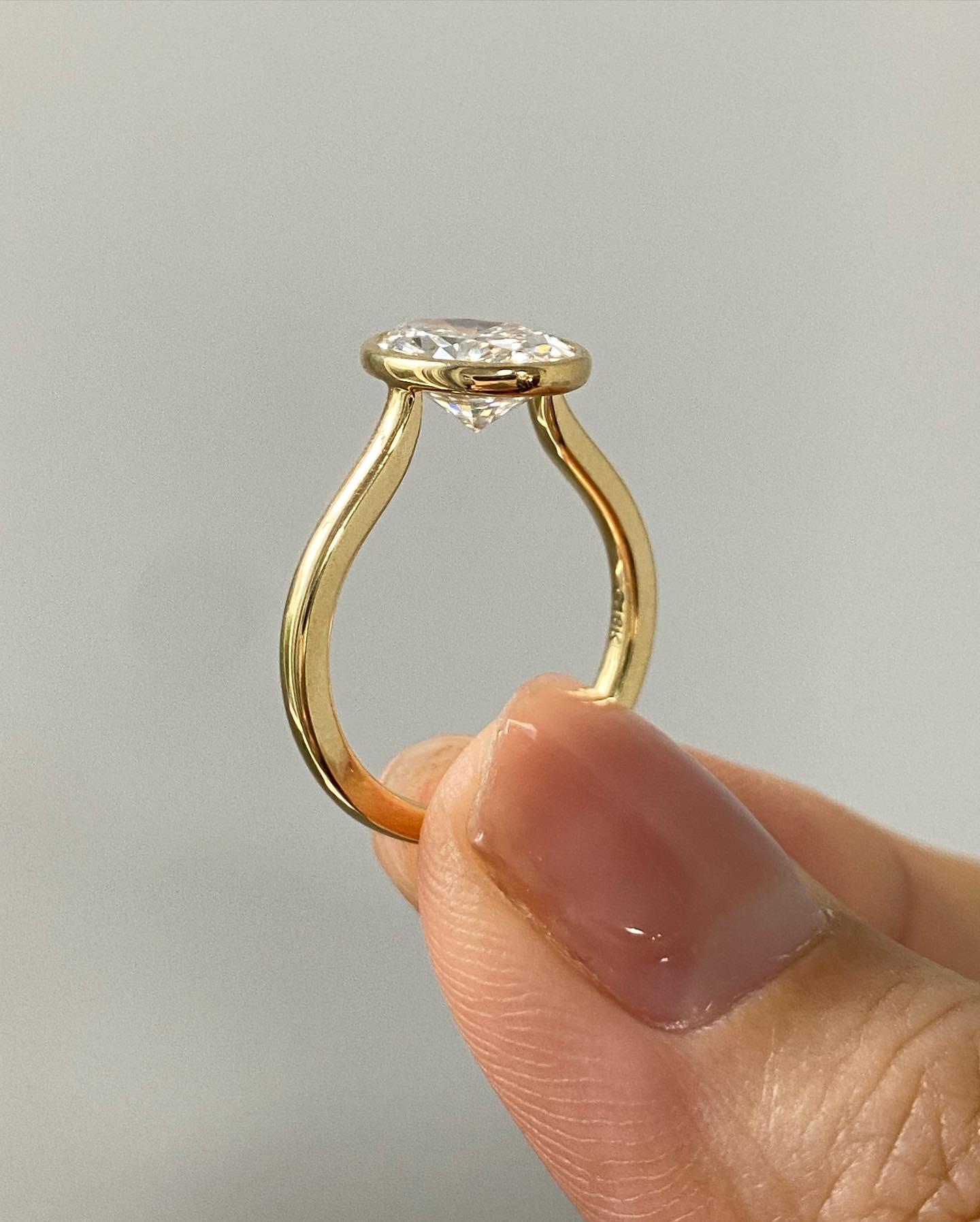 Oval Moissanite Bezel Engagement Ring, 14k Gold Oval Diamond Ring, Minimalist Solitaire Ring for Women, Bezel Set Wedding Ring, Promise Ring