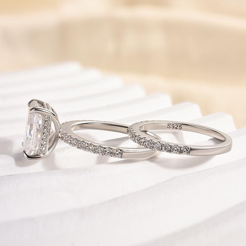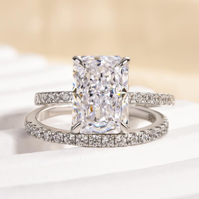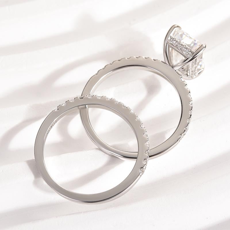 Radiant Cut Moissanite Engagement Ring Set, 3CT Hidden Halo Wedding Ring, Lab Diamond Bridal Set, 14K White Gold Pave Band For Women