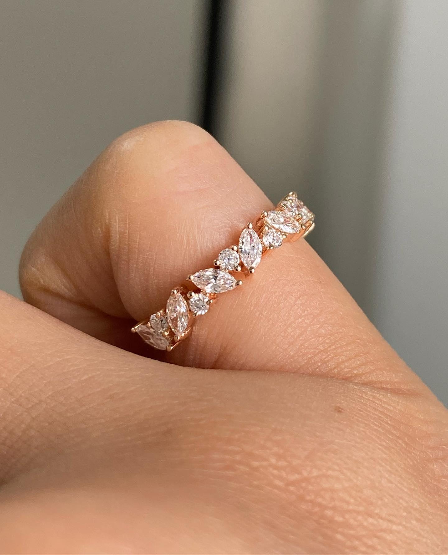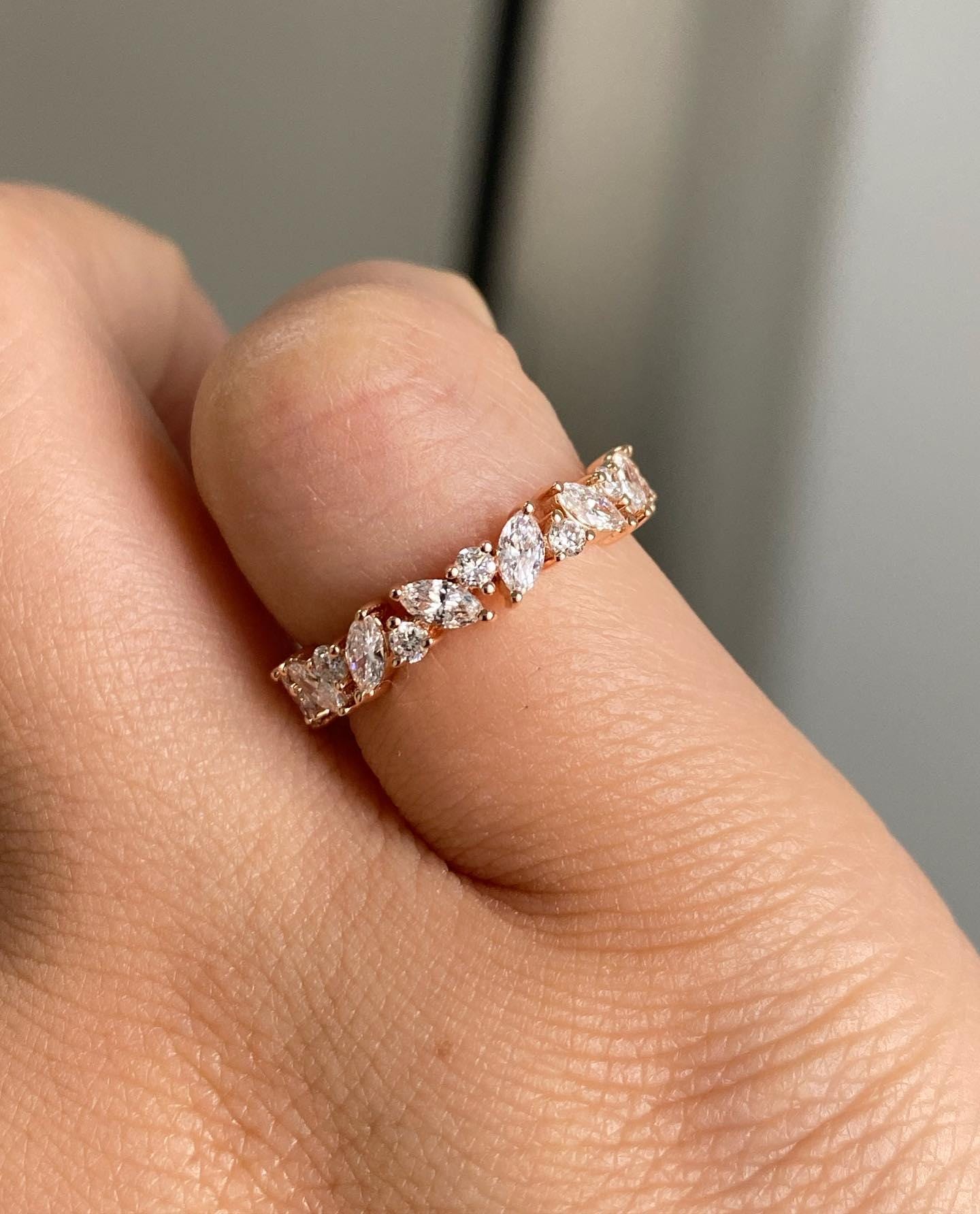 1.5 CT Marquise & Round Cut Full Eternity Band, Lab Grown Diamond Wedding Band in 14k Solid Gold, Dainty Bridal Promise Ring, Stacking Band / Engagement Ring / Wedding Ring / Marquise & Rond Cut Ring / Full Eternity Band / Rose Gold Ring / Handmade Ring / 14k Solid Gold Ring / Fine Jewelry / Valentine Gift / Fine Jewelry / Rings for Her / Stunning Ring / Stacking Ring / Everyday Wear Ring / Daily Wear Ring / Marquise & Round Cut Ring / Lab Grown Diamond