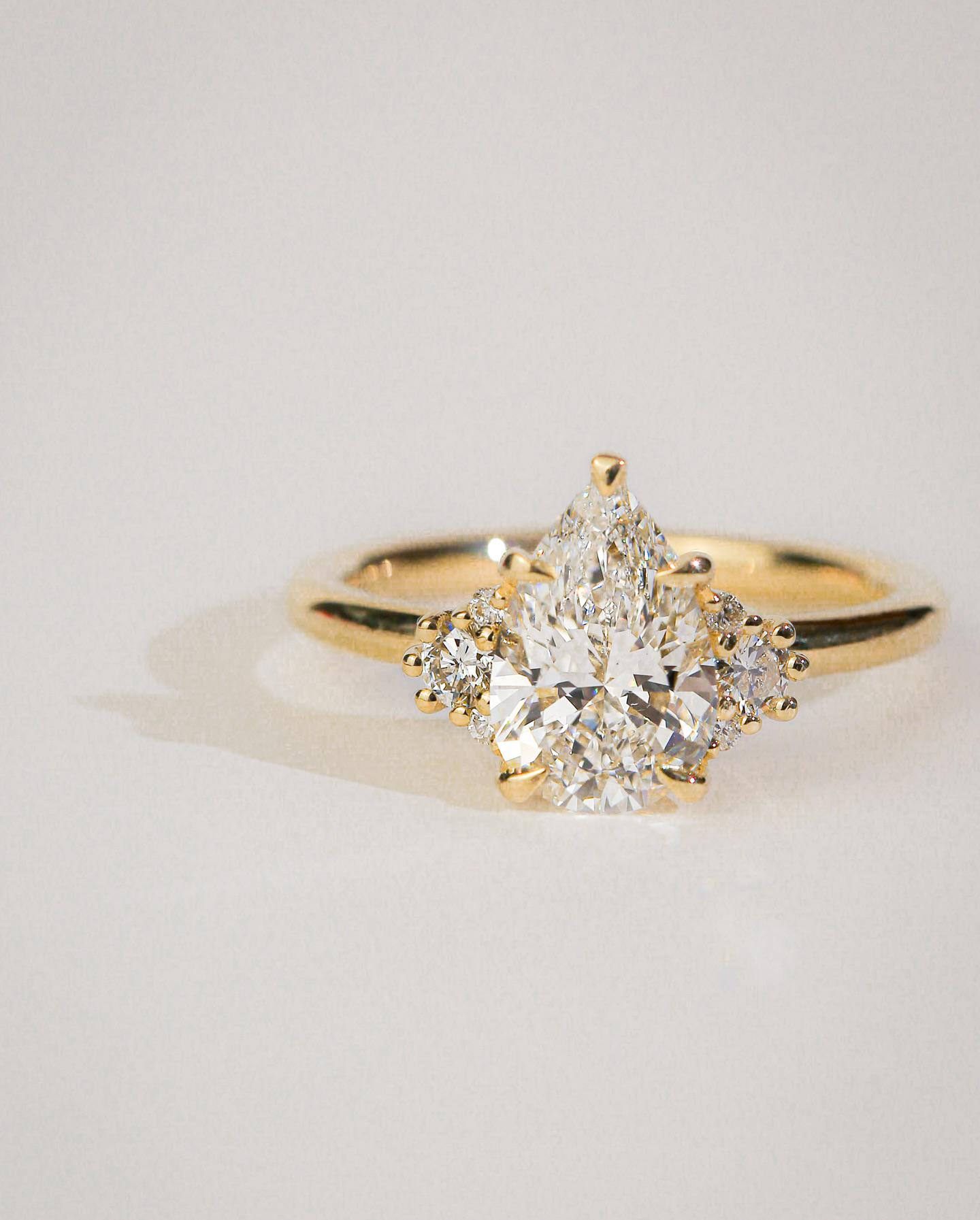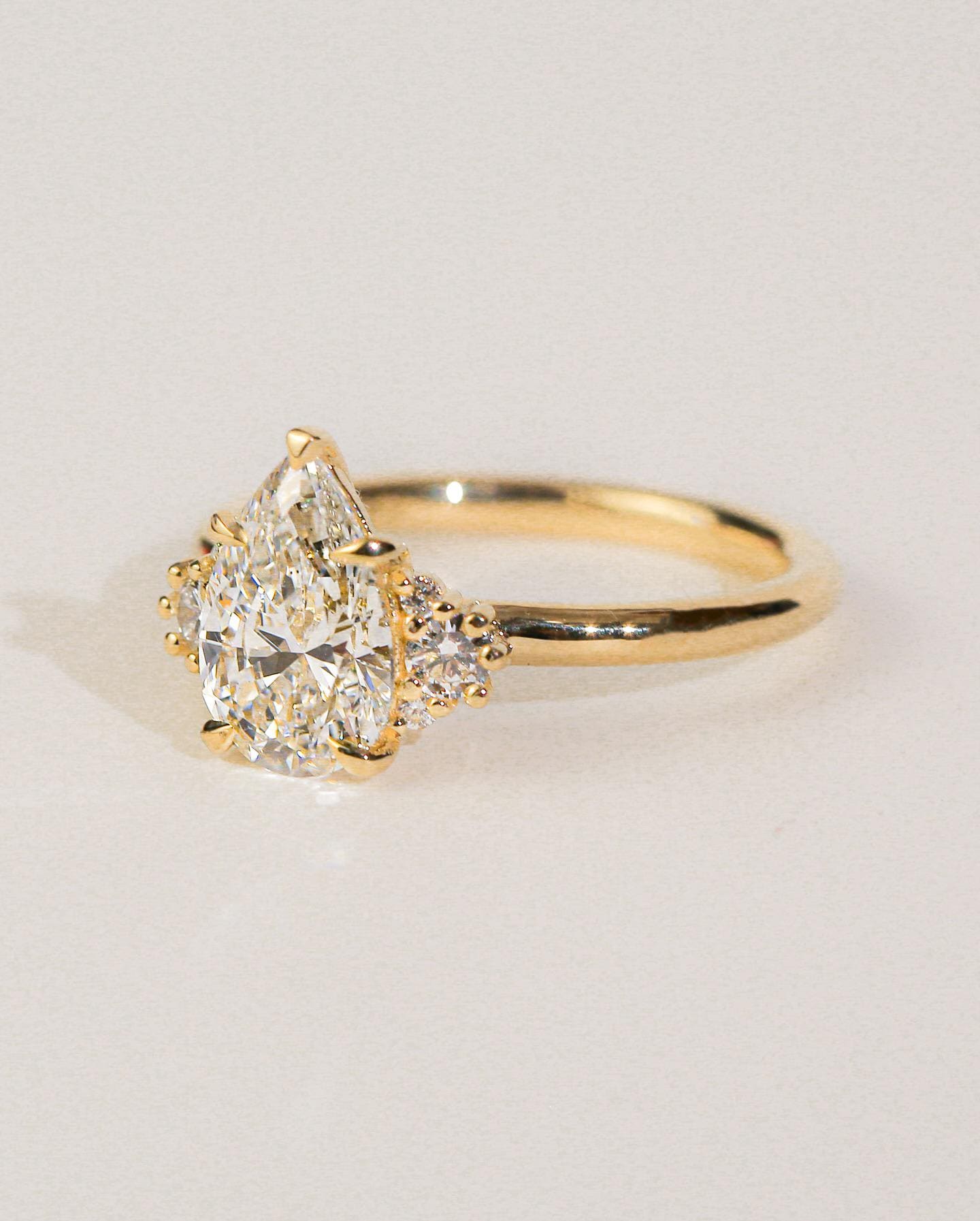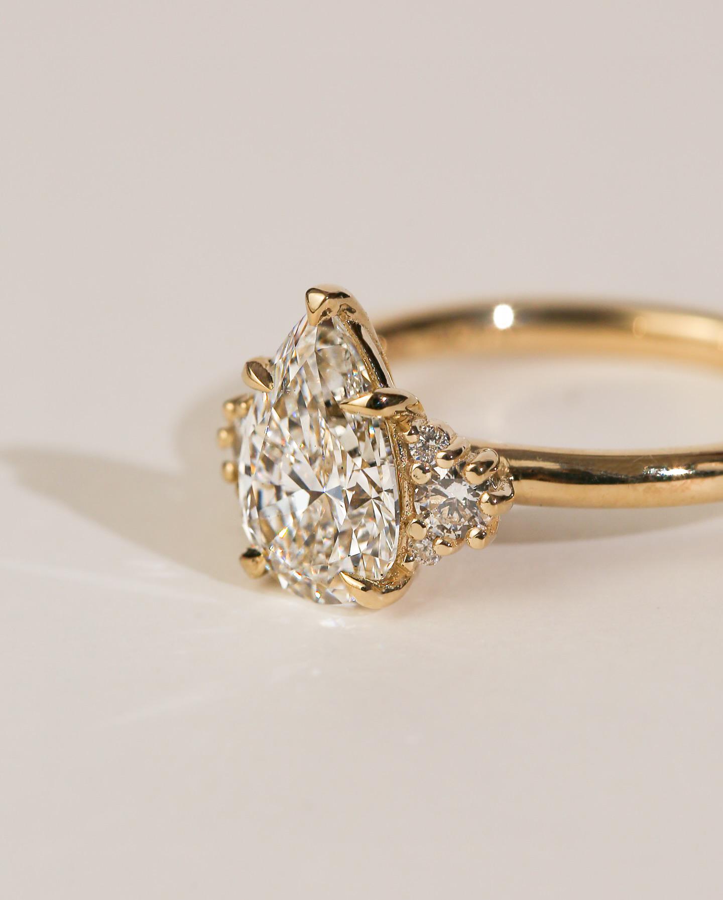 Three Stone Lab Grown Diamond Ring, Pear Cut Lab Diamond Engagement Ring, 14k Gold Trilogy Ring, Art Deco Proposal Ring, Everyday Wear Ring