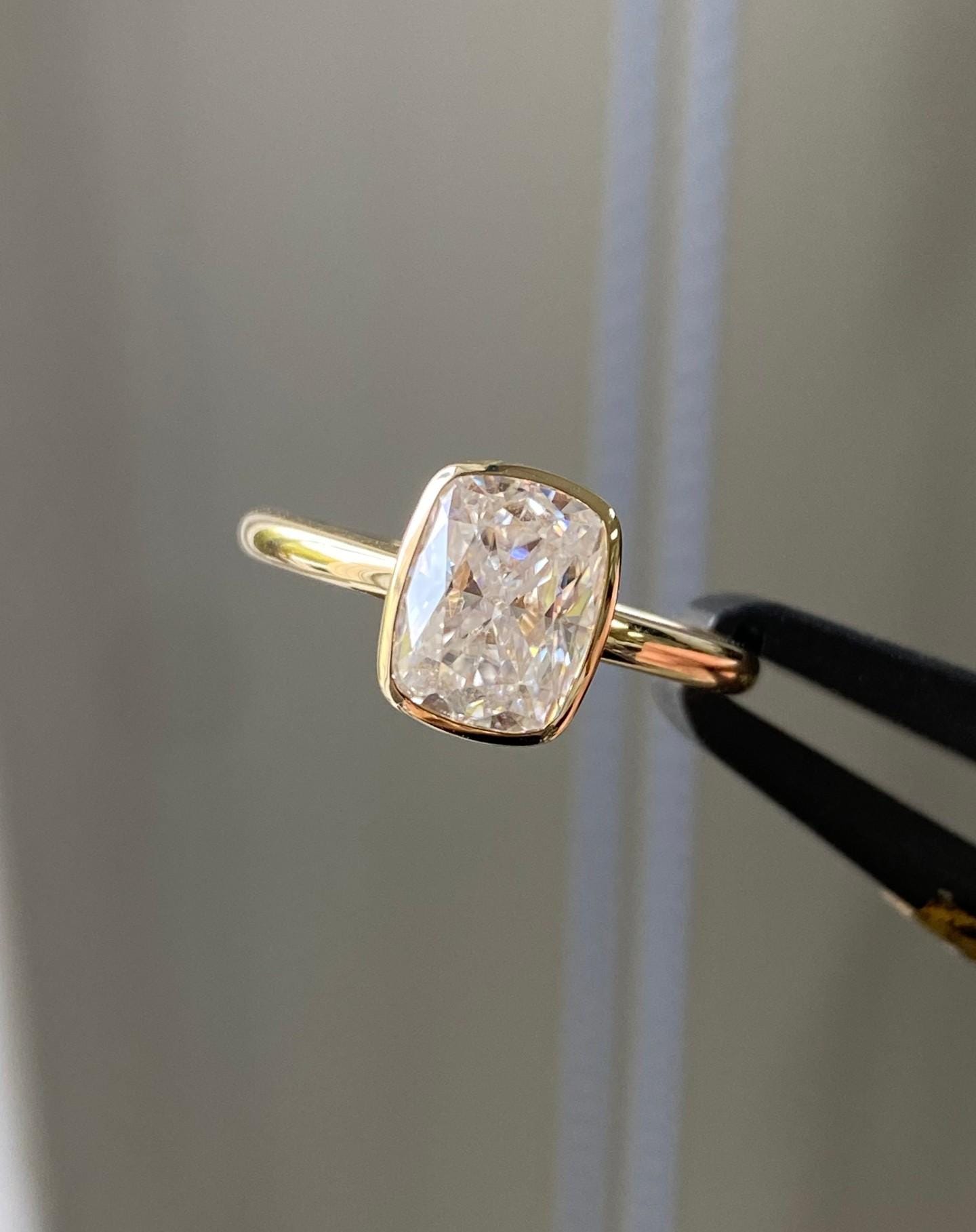 14k Gold Bezel Set Engagement Ring, 4 CT Cushion Cut Lab Grown Diamond Solitaire Wedding Ring, Art Deco Wedding Ring for Her, Valentine Gift / Engagement Ring / Wedding Ring / Yellow Gold Ring / Handmade Ring / 14k Solid Gold Ring / Fine Jewelry / Valentine Gift / Fine Jewelry / Rings for Her / Stunning Ring / Stacking Ring / Bridal Ring / Lab Grown Diamond / Handmade Ring / Solitaire Ring / Bezel Set Ring / Cushion Solitaire Ring