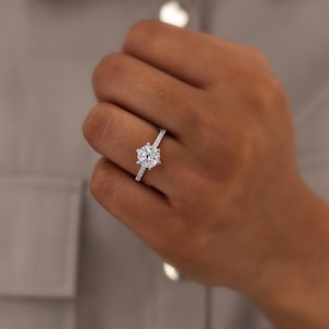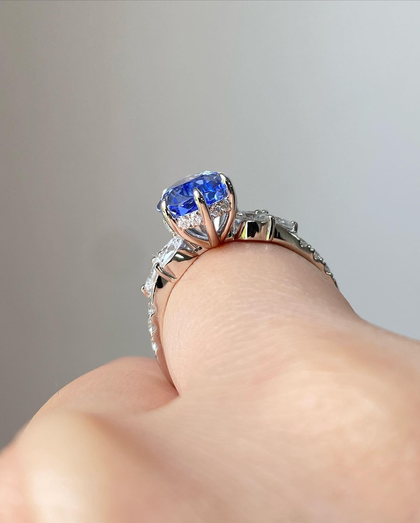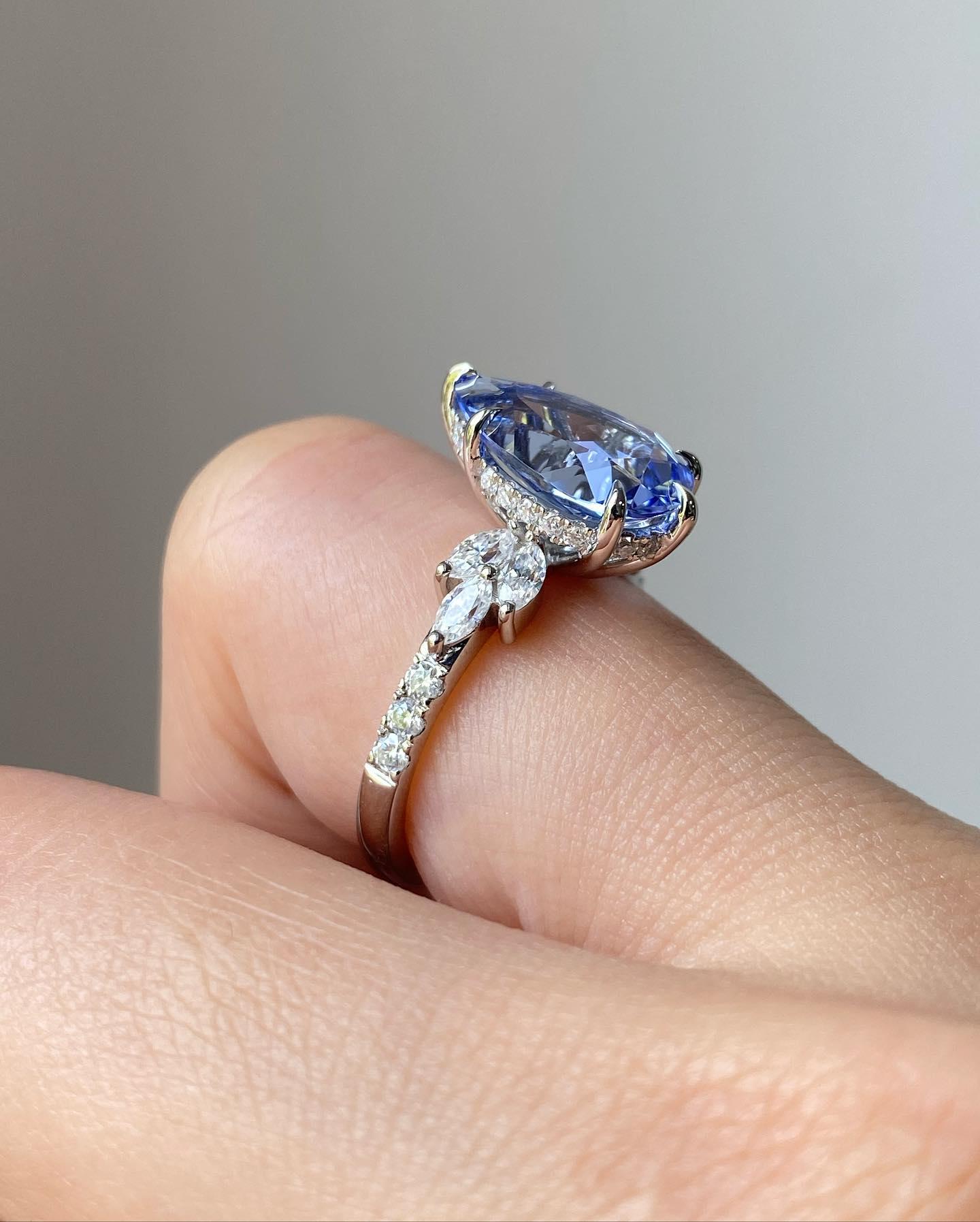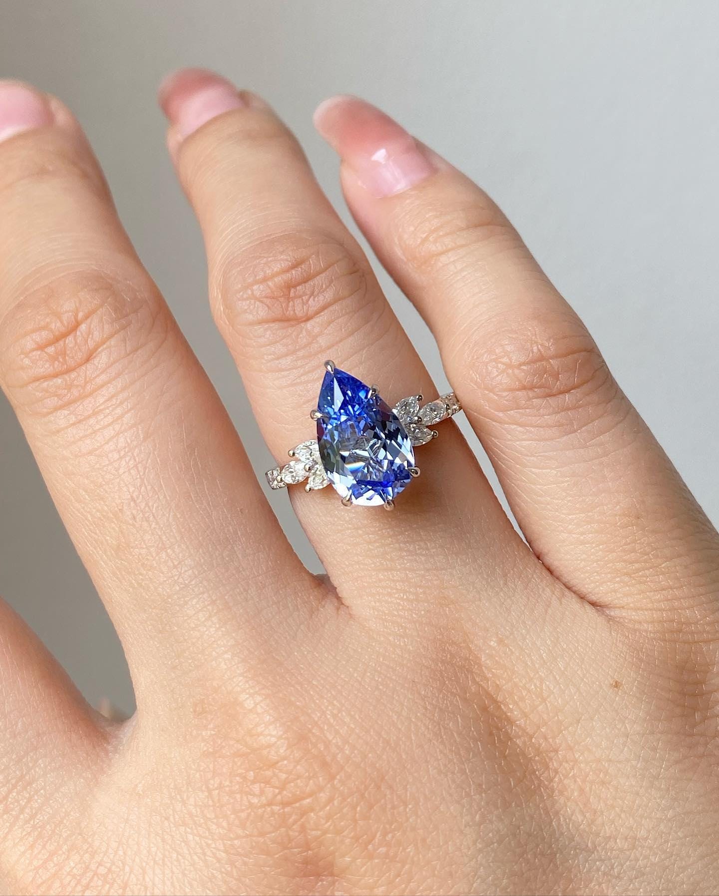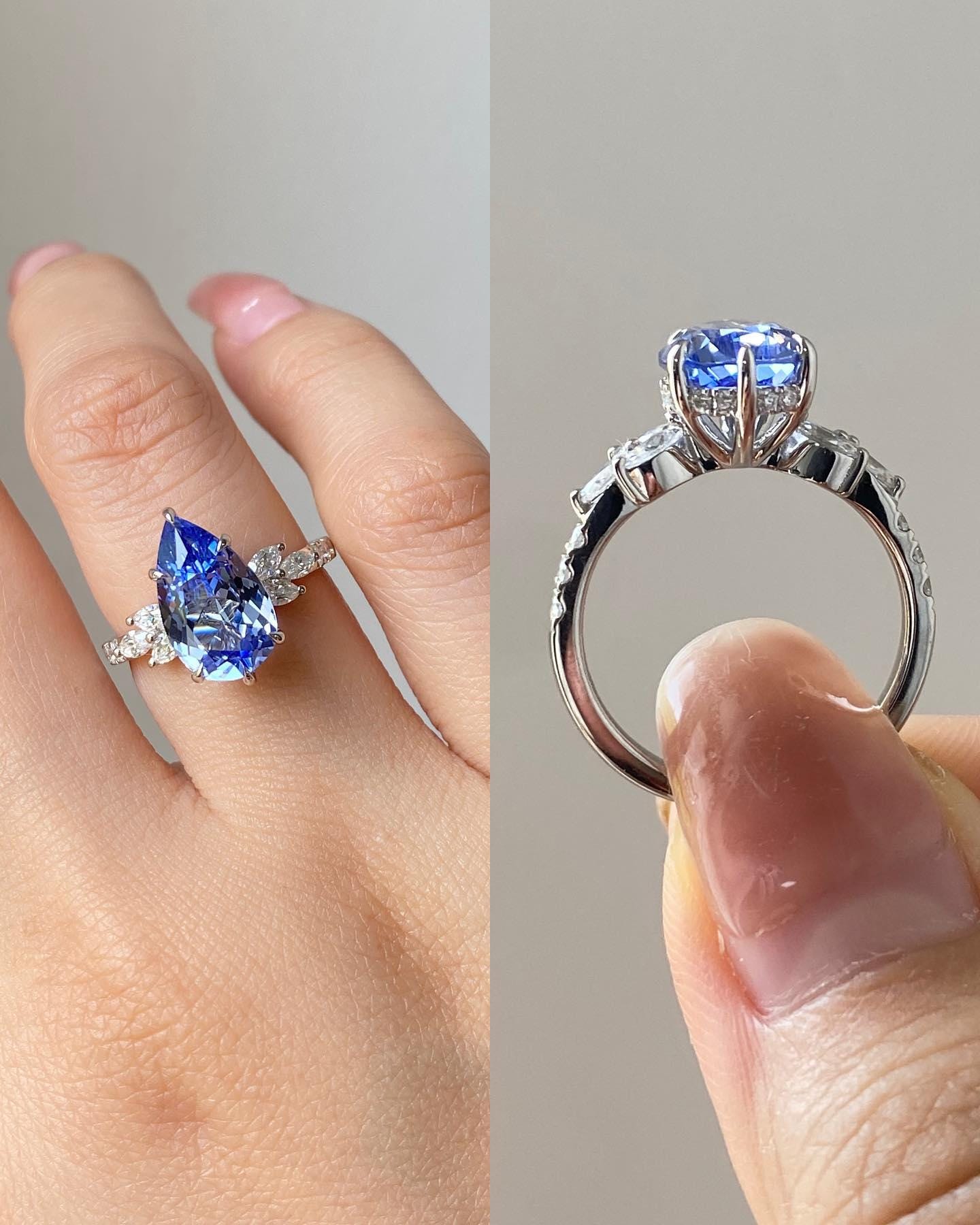 Pear Cut Blue Moissanite Stone Engagement Ring, 14k Solid Gold Cluster Art Deco Wedding Ring, Vintage Style Hidden Halo Ring, Stunning Ring / Engagement Ring / Wedding Ring / White Gold Ring / 14k Solid Gold Ring / Fine Jewelry / Valentine Gift / Rings for Her / Stunning Ring / Stacking Ring / Bridal Ring / Lab Grown Diamond / Handmade Ring / Cluster Ring