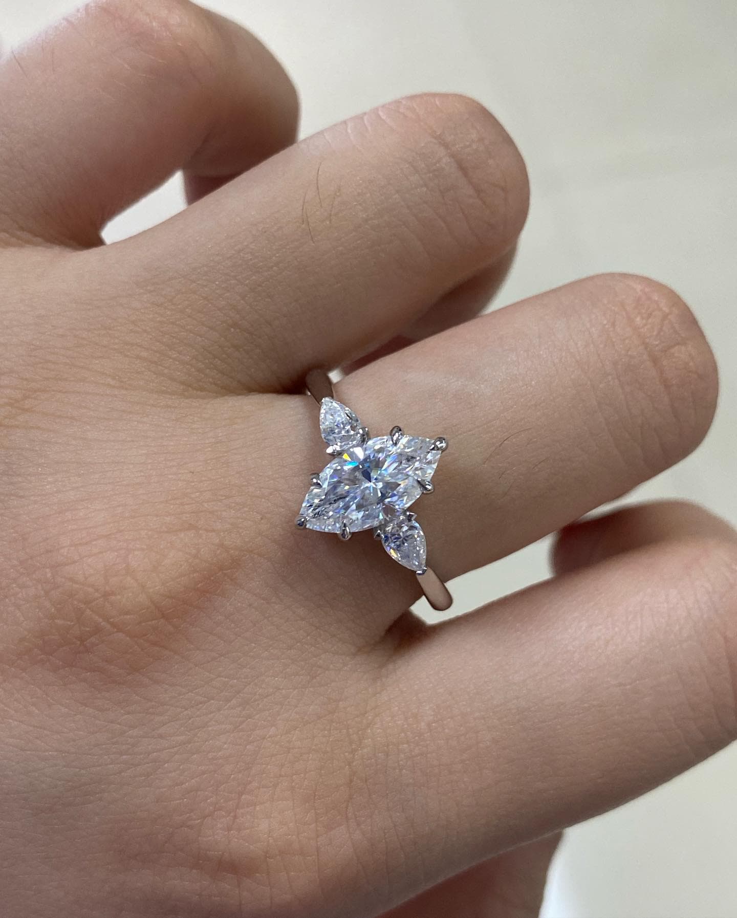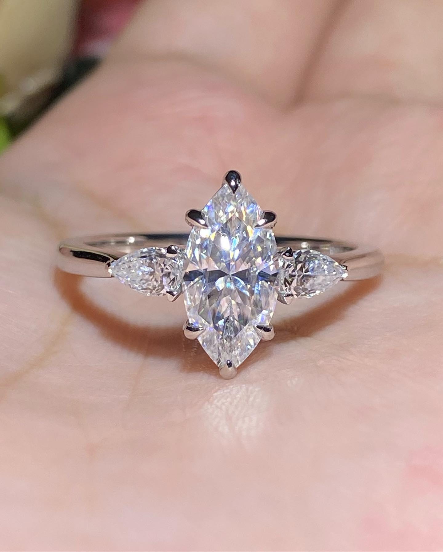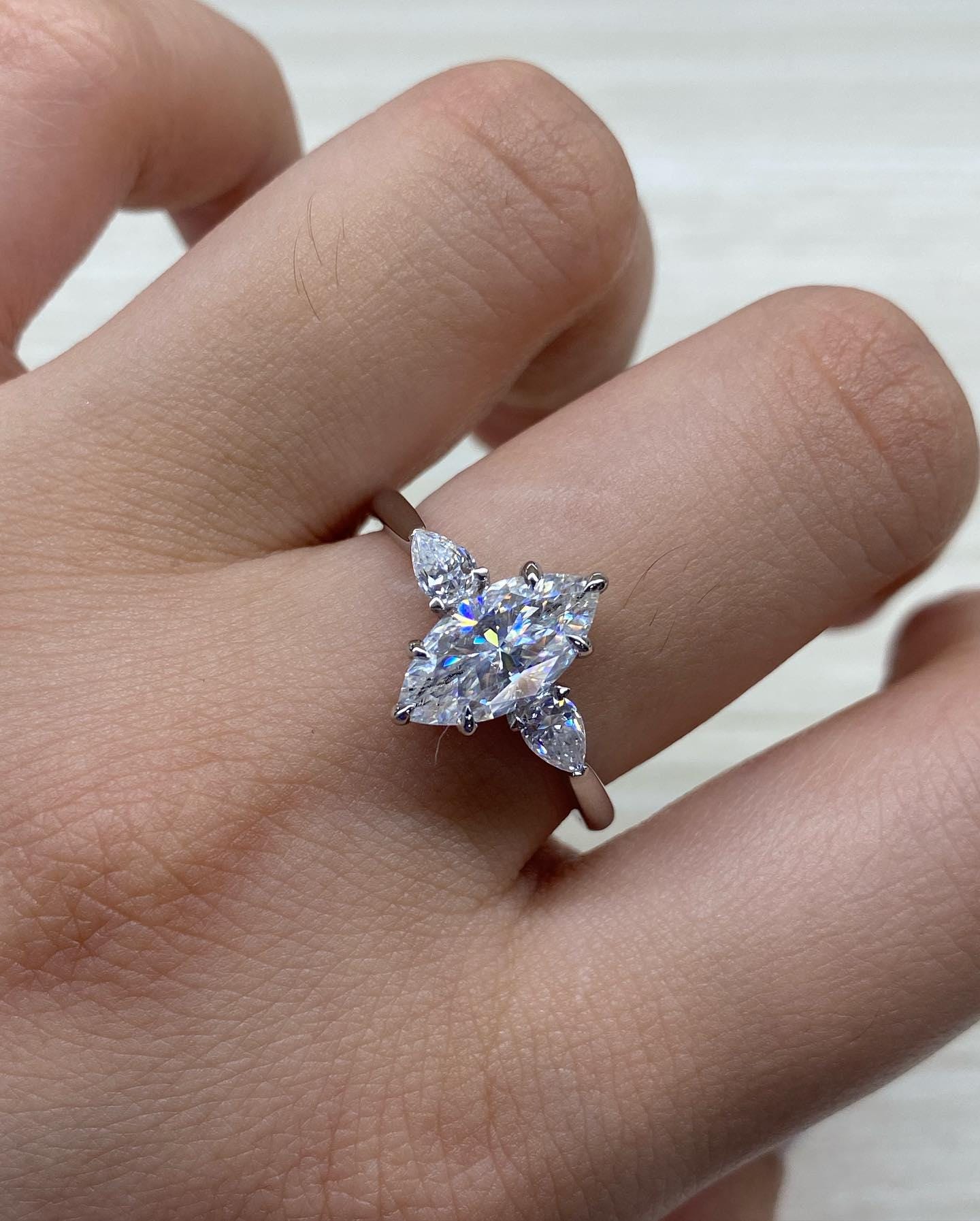 Marquise Cut Moissanite Three Stone Ring, 14k Solid Gold Dainty Engagment Ring, Art Deco Trilogy Bridal Wedding Ring, Valentine Gift Ring