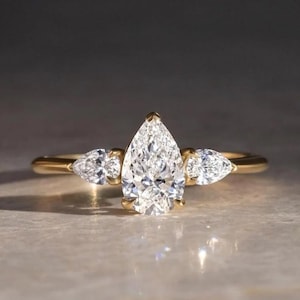 Marquise Cut Moissanite Three Stone Ring, 14k Solid Gold Dainty Engagment Ring, Art Deco Trilogy Bridal Wedding Ring, Valentine Gift Ring / Engagement Ring / Wedding Ring / Yellow Gold Ring / Handmade Ring / 14k Solid Gold Ring / Fine Jewelry / Valentine Gift / Fine Jewelry / Rings for Her / Stunning Ring / Stacking Ring / Bridal Ring / Lab Grown Diamond / Handmade Ring / Three Stone Ring / Marquise Cut Ring