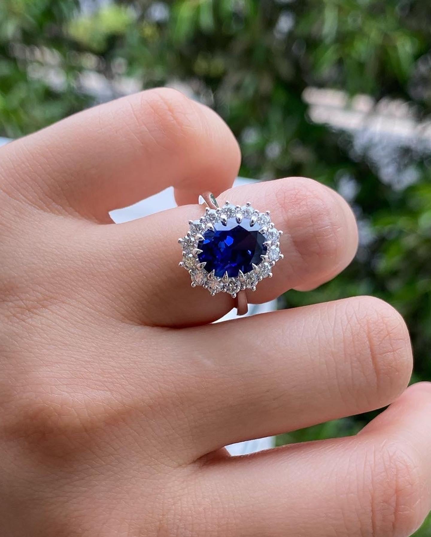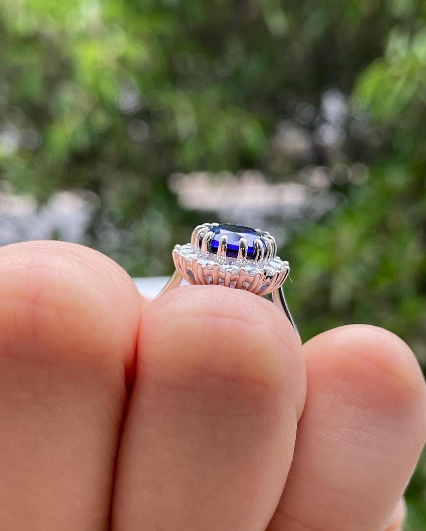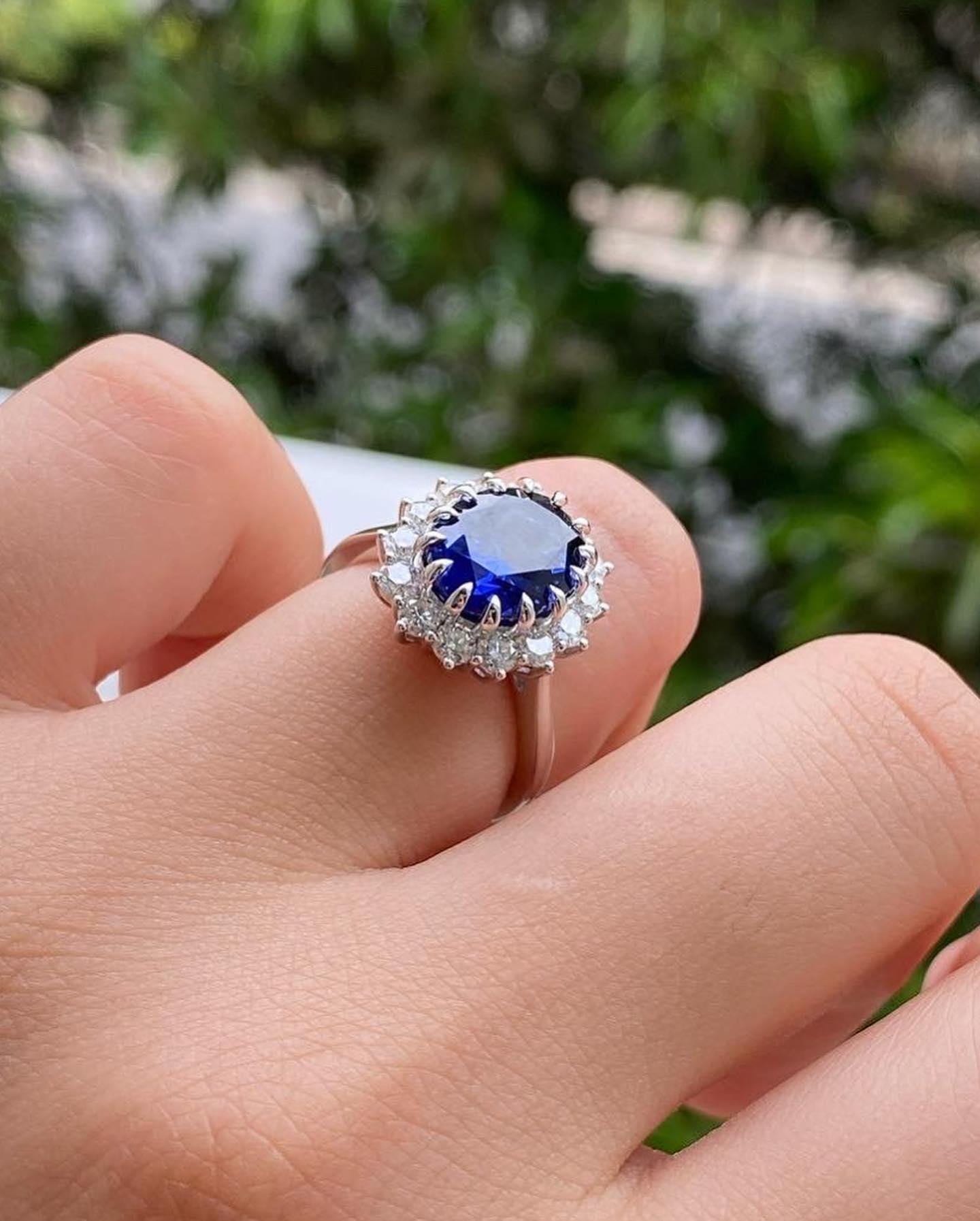 14k Solid Gold Halo Style Engagement Ring, Oval Cut Blue Sapphire Wedding Ring, Blue Gemstone Art Deco Gold Ring, Statement Ring for Women / Engagement Ring / Wedding Ring / White Gold Ring / Handmade Ring / 14k Solid Gold Ring / Fine Jewelry / Valentine Gift / Fine Jewelry / Rings for Her / Stunning Ring / Stacking Ring / Bridal Ring / Lab Grown Diamond / Handmade Ring / Moissanite Stone Ring