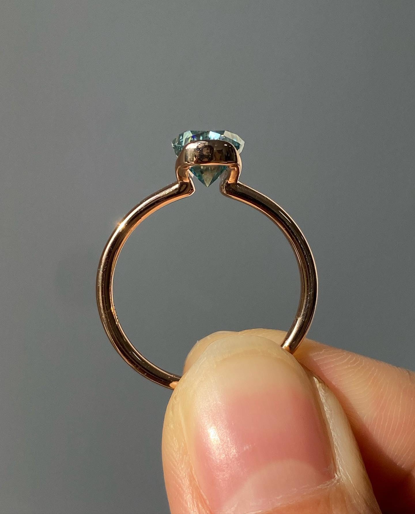 Per Cut Moissanite Blue Stone Engagement Ring, 14k Solid Yellow Gold Solitaire Ring, Stacking Valentine Gift Ring, Handmade Fine Jewelry