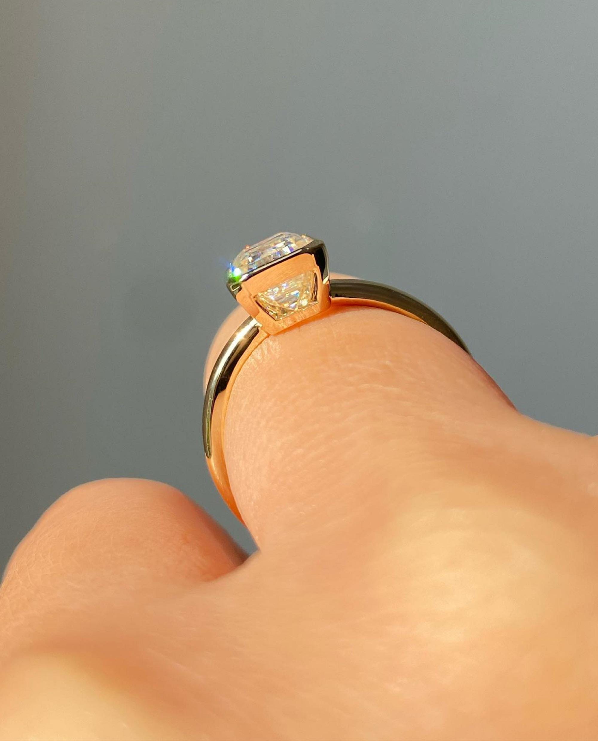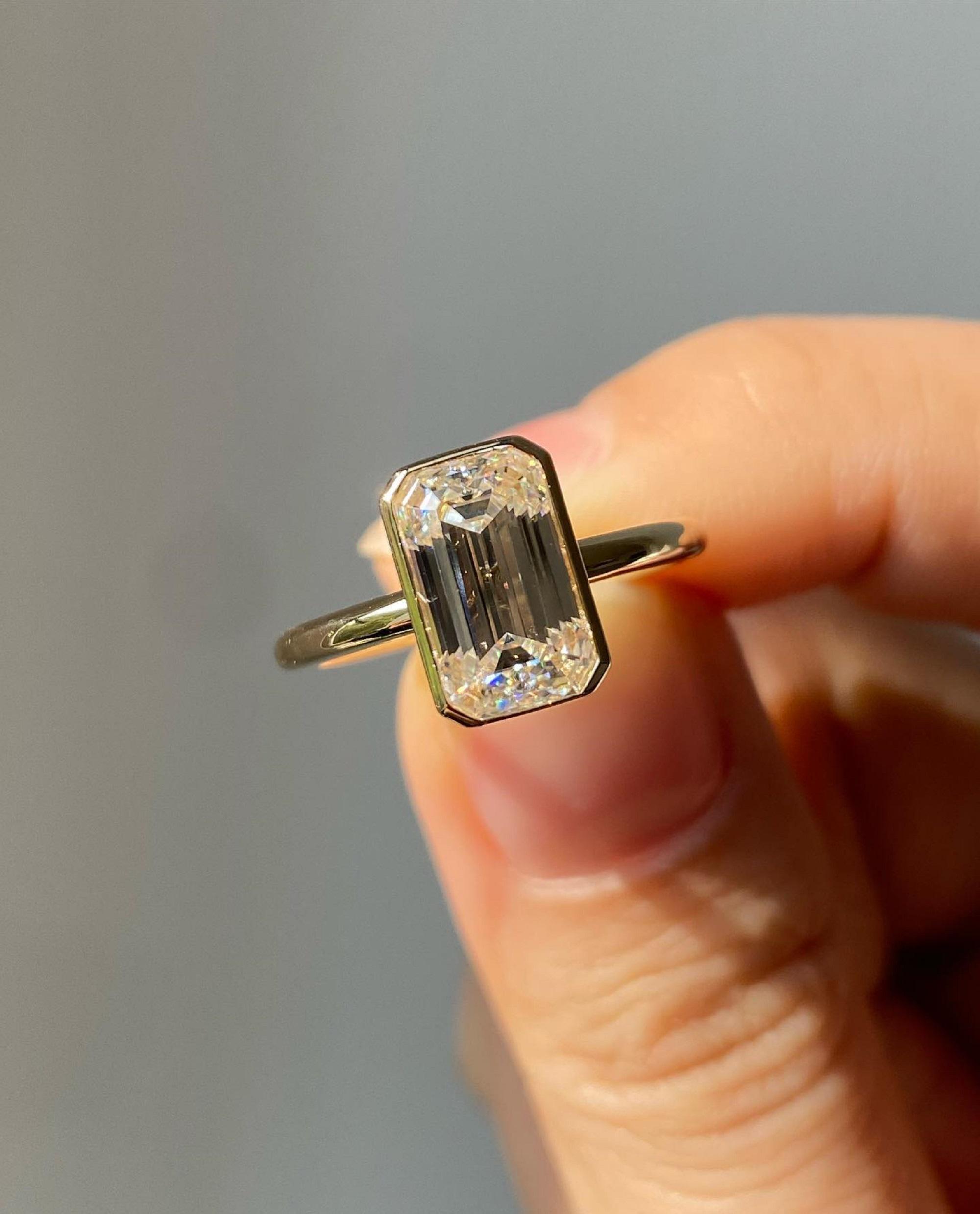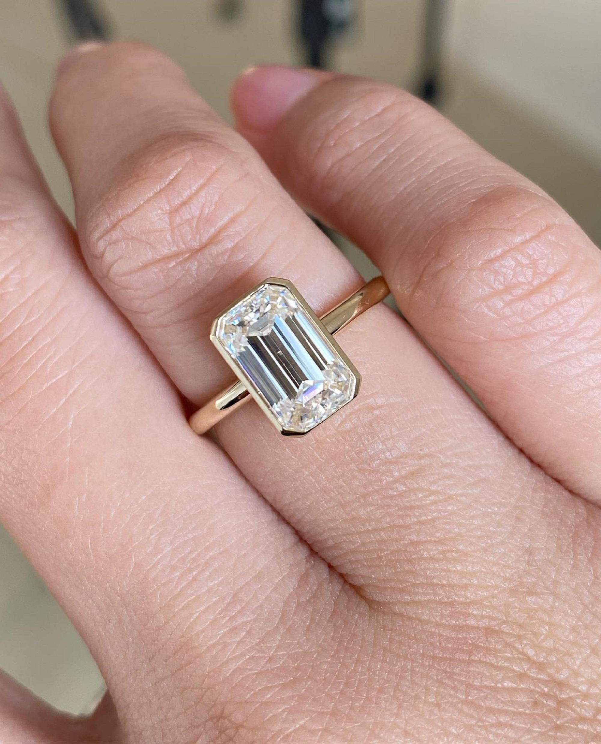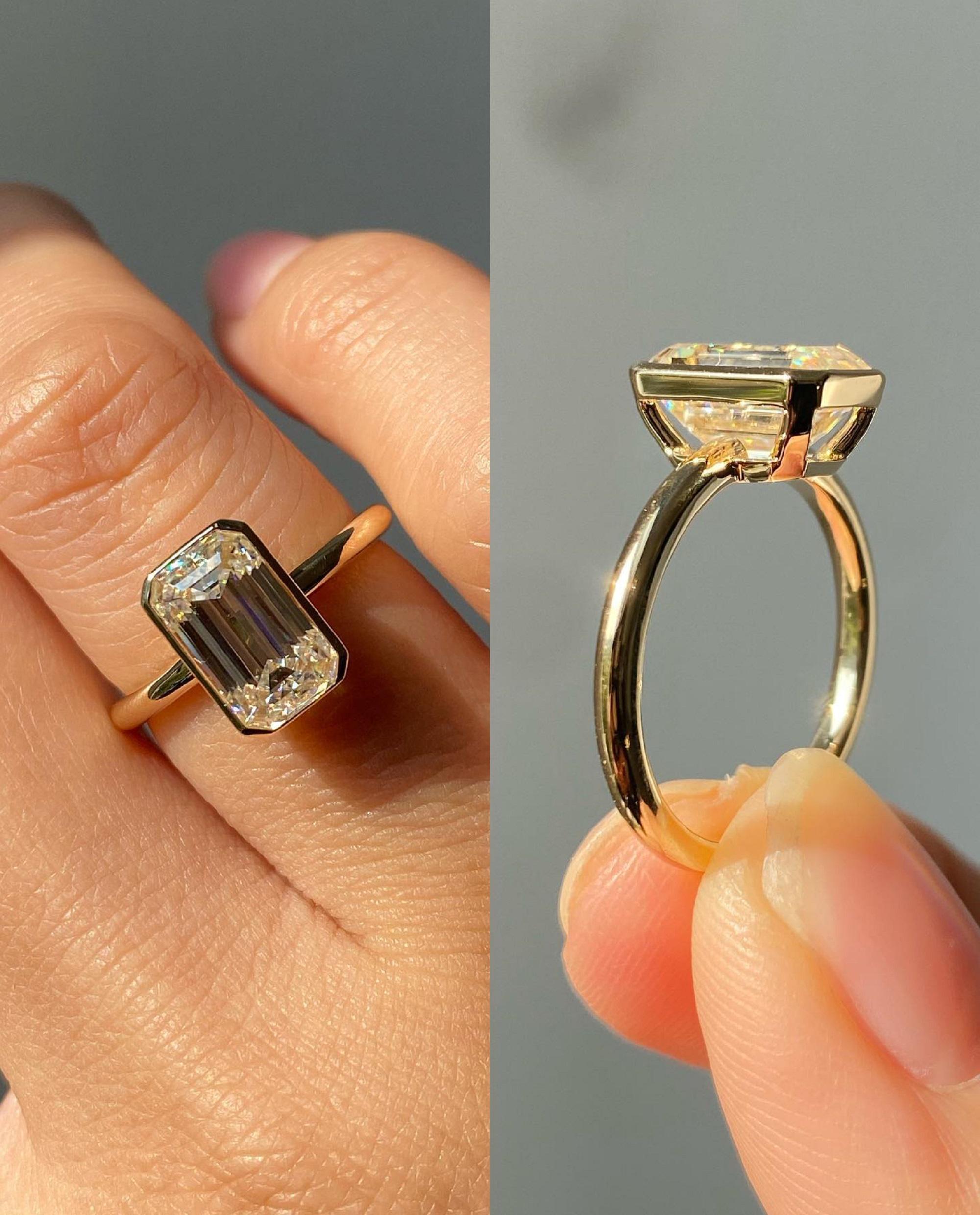 3.5 CT Emerald Cut Solitaire Ring, Dainty Bezel Set Engagement Ring, 14K Gold Lab Grown Diamond Wedding Ring, Anniversary Gift Ring For Her