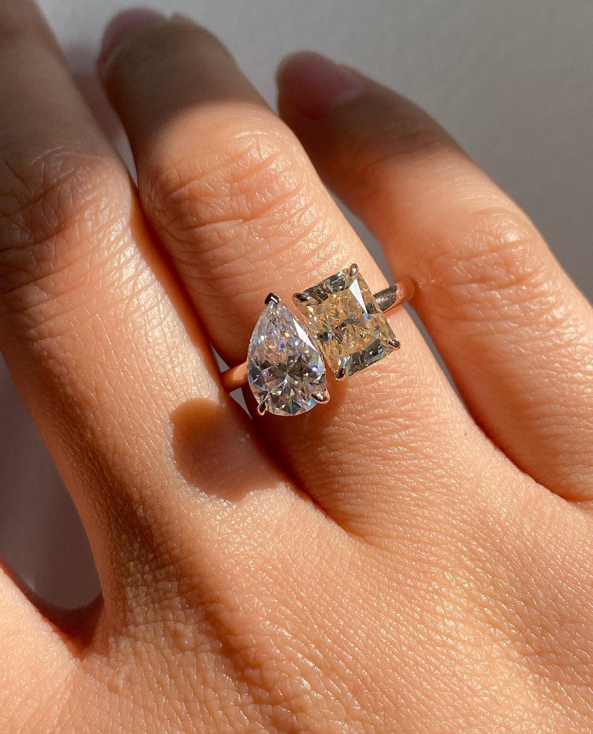 Toi Et Moi Honey Yellow Radiant And Pear Cut Engagement Ring, 14k Gold Proposal Ring, Modern Dual Stone Promise Ring, Bridal Wedding Gift, Valentine Gift / Engagement Ring / Wedding Ring / White Gold Ring / Handmade Ring / 14k Solid Gold Ring / Fine Jewelry / Christmas Gift / Modern Dual Stone Promise Ring / Rings for Her / Stunning Ring / Stacking Ring / Bridal Ring / Lab Grown Diamond / You And Me Ring / Fine Jewelry By Jinaldiamond
