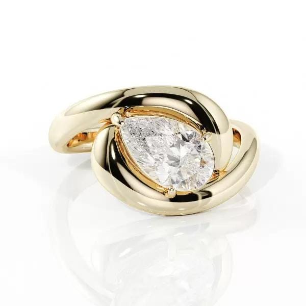 2 CT Pear Cut Lab Grown Diamond Ring 4K Yellow Gold Bypass Engagement Ring Unique Moissanite Solitaire Promise Ring Modern Statement Jewelry / Engagement Ring / Wedding Ring / White Gold Ring / Handmade Ring / 14k Solid Gold Ring / Fine Jewelry / Valentine Gift / Fine Jewelry / Rings for Her / Oval Cut Ring / Stacking Ring / Bridal Ring / Lab Grown Diamond / Handmade Ring / Accent Ring