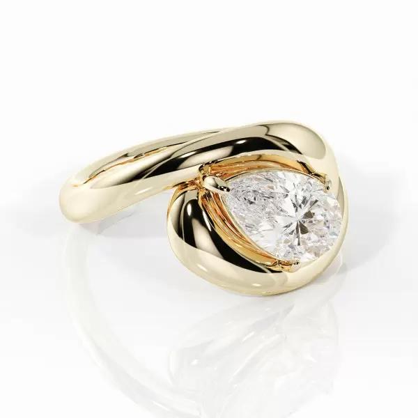 2 CT Pear Cut Lab Grown Diamond Ring 4K Yellow Gold Bypass Engagement Ring Unique Moissanite Solitaire Promise Ring Modern Statement Jewelry
