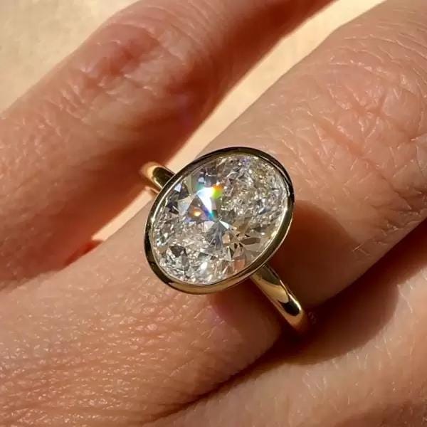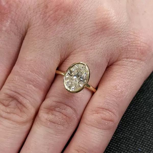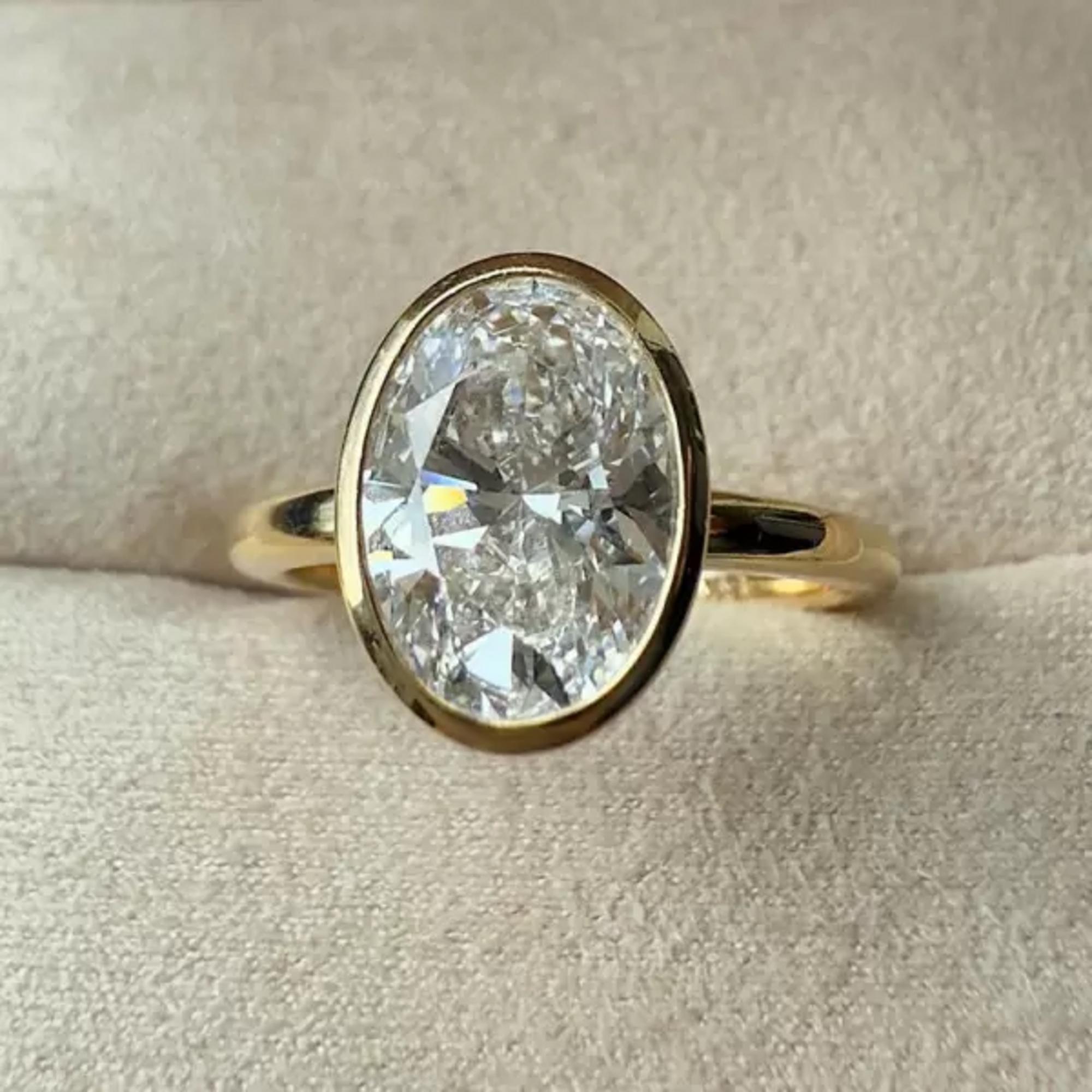 3 CT Oval Cut Lab Grown Diamond Ring 14K Yellow Gold Bezel Set Engagement Ring Modern Solitaire Bridal Ring Moissanite Diamond Jewelry Gift / Engagement Ring / Wedding Ring / White Gold Ring / Handmade Ring / 14k Solid Gold Ring / Fine Jewelry / Valentine Gift / Fine Jewelry / Rings for Her / Oval Cut Ring / Bezel Ring / Bridal Ring / Lab Grown Diamond / Handmade Ring / Accent Ring