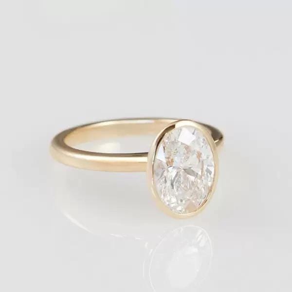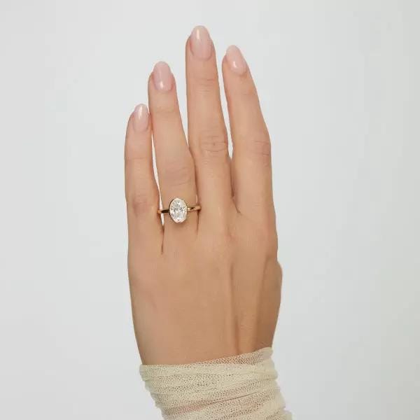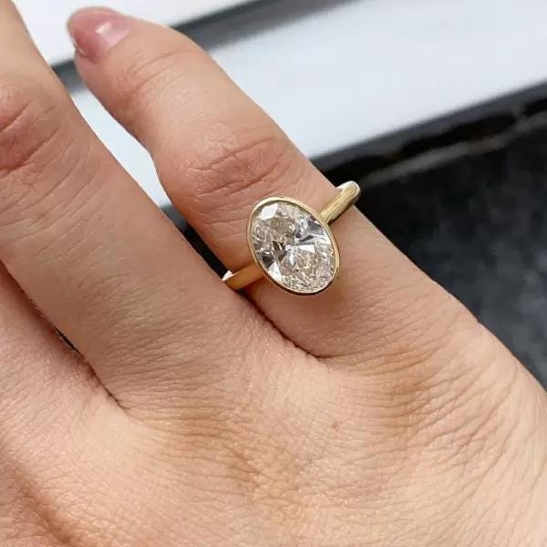 3 CT Oval Cut Lab Grown Diamond Ring 14K Yellow Gold Bezel Set Engagement Ring Modern Solitaire Bridal Ring Moissanite Diamond Jewelry Gift