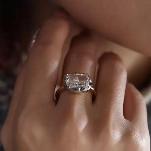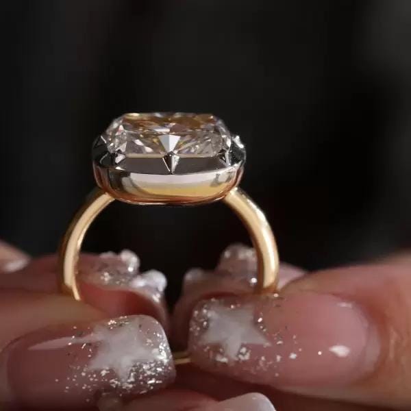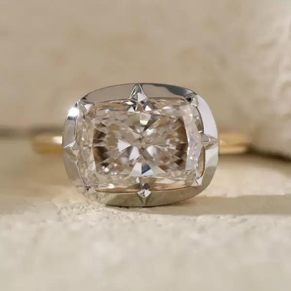 3CT Cushion Cut Lab Grown Diamond Ring Two Tone Vintage Star Prong Set 14K Gold Moissanite Unique Engagement Ring Antique Style Bridal Ring / Engagement Ring / Wedding Ring / White Gold Ring / Handmade Ring / 14k Solid Gold Ring / Fine Jewelry / Valentine Gift / Fine Jewelry / Rings for Her / Cushion Cut Ring / Prong Ring / Bridal Ring / Lab Grown Diamond / Handmade Ring / Accent Ring