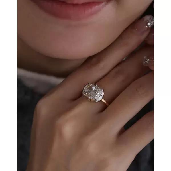 3CT Cushion Cut Lab Grown Diamond Ring Two Tone Vintage Star Prong Set 14K Gold Moissanite Unique Engagement Ring Antique Style Bridal Ring