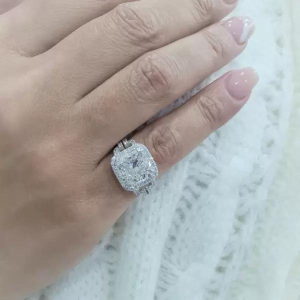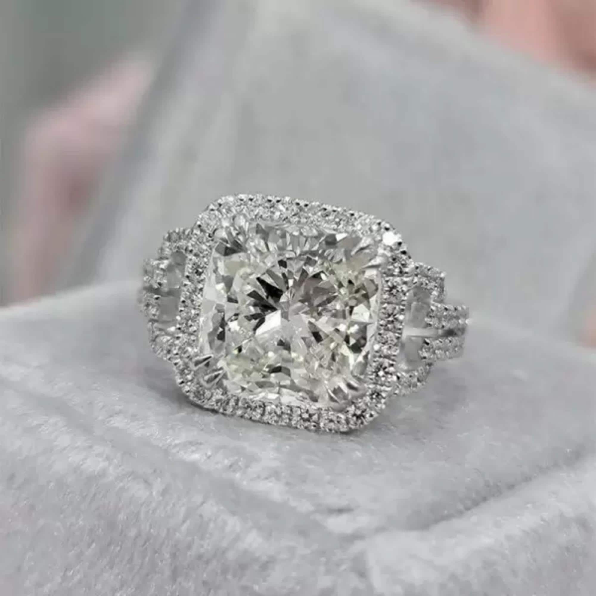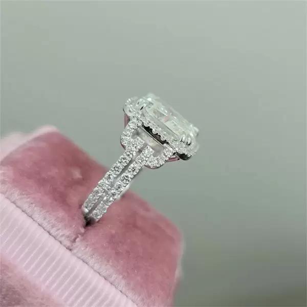3CT Cushion Cut Lab Grown Diamond Engagement Ring Split Shank Bridal Ring Halo Gold Cushion Ring Moissanite Luxury Sparkling Wedding Ring