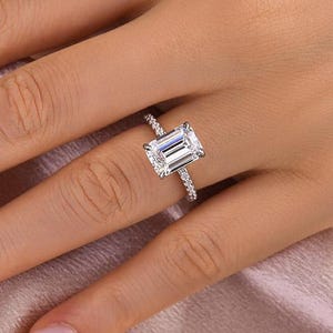 5 CT Elongated Cushion Cut Lab Grown Diamond Ring Three Stone Gold Engagement Ring Moissanite Unique Bridal Ring for Her Anniversary Jewelry