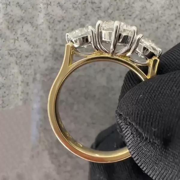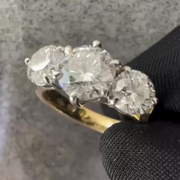 6.5 CT Three Stone Round Cut Lab Grown Diamond Ring Gold Engagement Ring for Women Moissanite Classic Trilogy Bridal Ring Promise Jewelry
