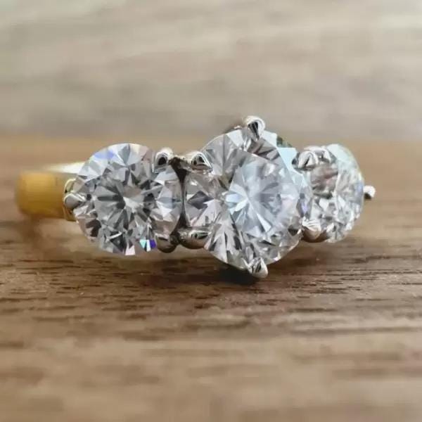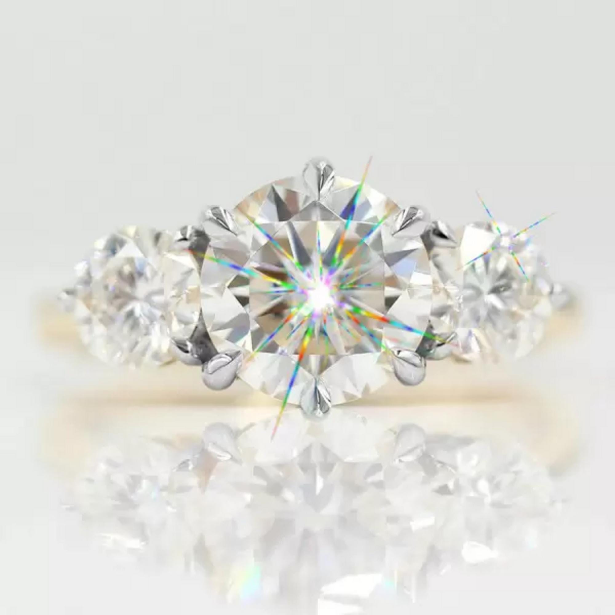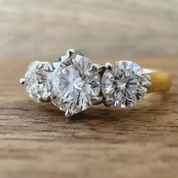 6.5 CT Three Stone Round Cut Lab Grown Diamond Ring Gold Engagement Ring for Women Moissanite Classic Trilogy Bridal Ring Promise Jewelry / Wedding Ring / Yellow Gold Ring / Handmade Ring / 14k Solid Gold Ring / Fine Jewelry / Valentine Gift / Fine Jewelry / Rings for Her / Stunning Ring / Stacking Ring / Bridal Ring / Lab Grown Diamond / Handmade Ring / Three Stone Ring / Glamorous Ring / Round Solitaire Ring / Luxury Ring