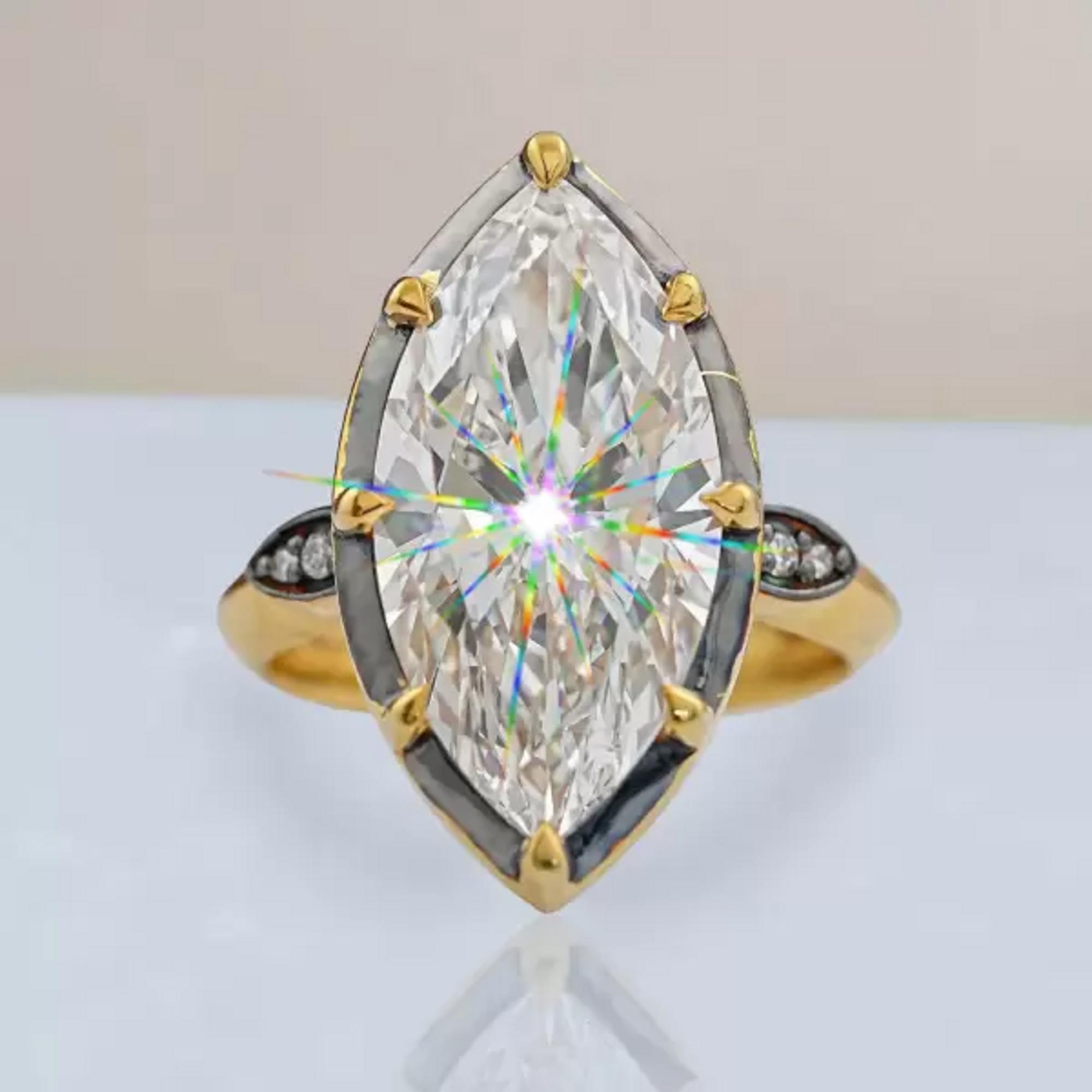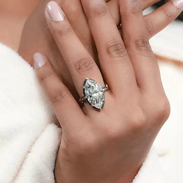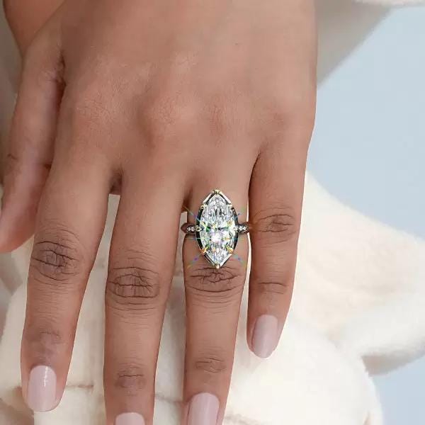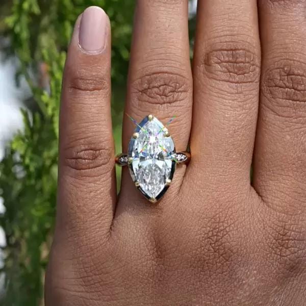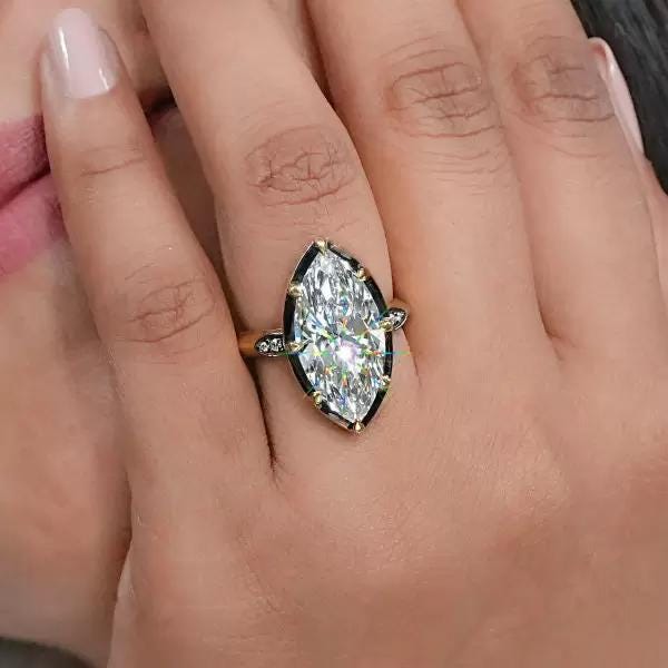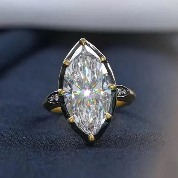8CT Marquise Moissanite Wedding Ring Art Deco Inspired Gold Ring Sparkling Lab Grown Diamond Statement Engagement Ring Custom Bridal Jewelry