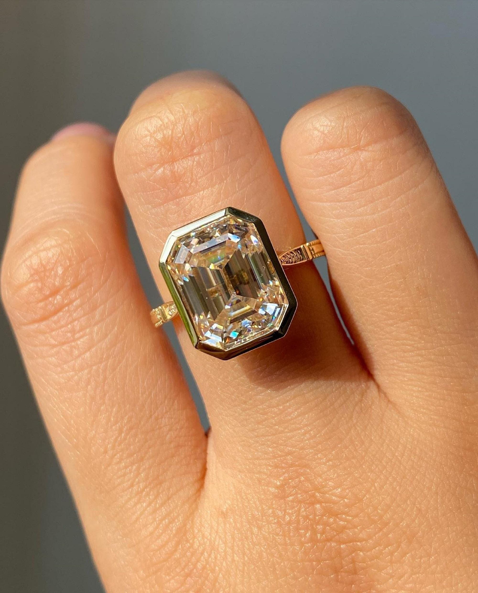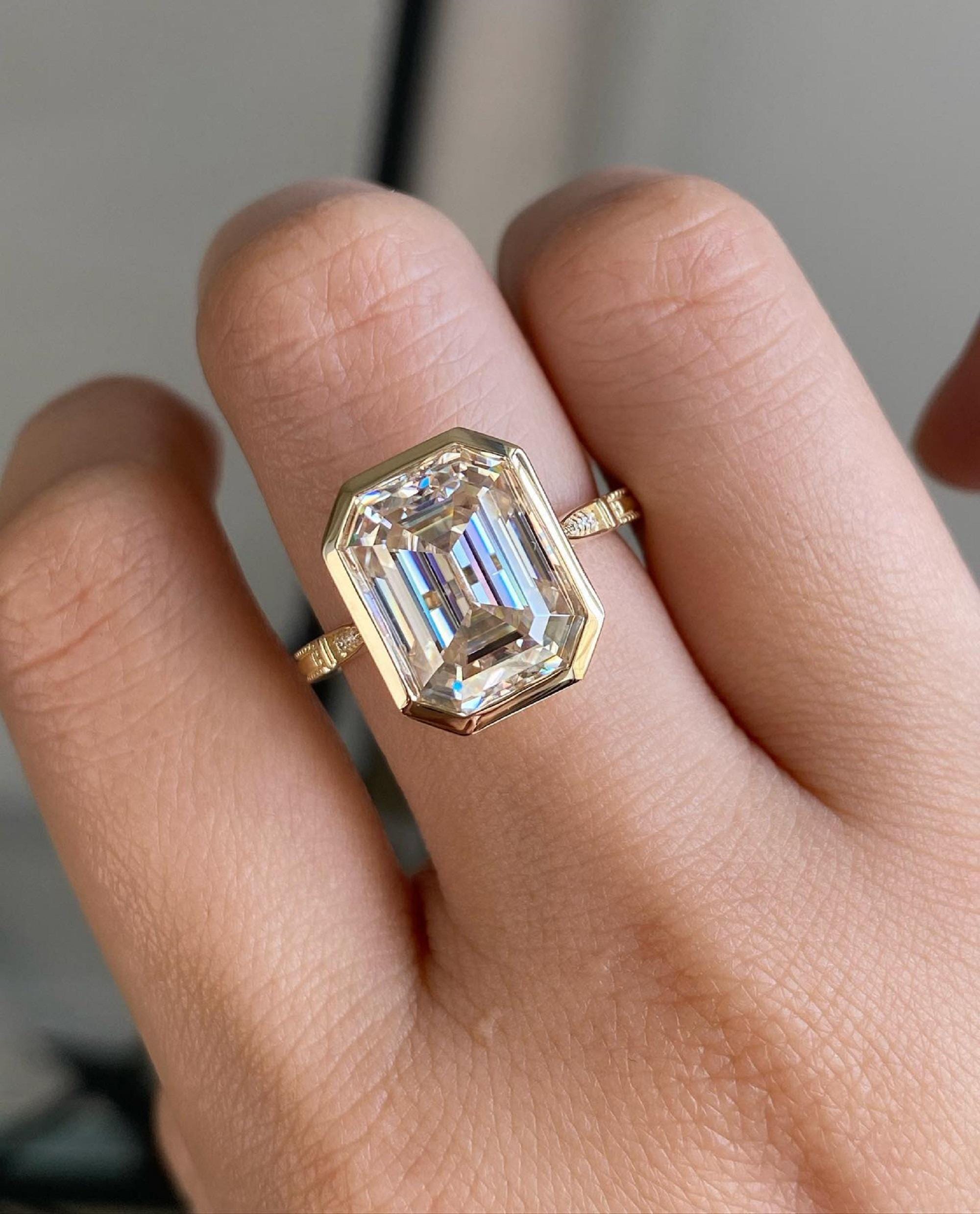 5 CT Emerald Cut Bezel Set Ring, 14k Solid Yellow Gold Engagement Ring, Dainty Solitaire Wedding Ring, Art Deco Handmade Valentines Gift / Engagement Ring / Wedding Ring / Yellow Gold Ring / Handmade Ring / 14k Solid Gold Ring / Fine Jewelry / Valentine Gift / Fine Jewelry / Rings for Her / Stacking Ring / Bridal Ring / Lab Grown Diamond / Handmade Ring / Women Ring / Solitaire Ring / Full Bezel Set Ring / Handmade Jewelry by Jinaldaimond / Bezel Set Ring