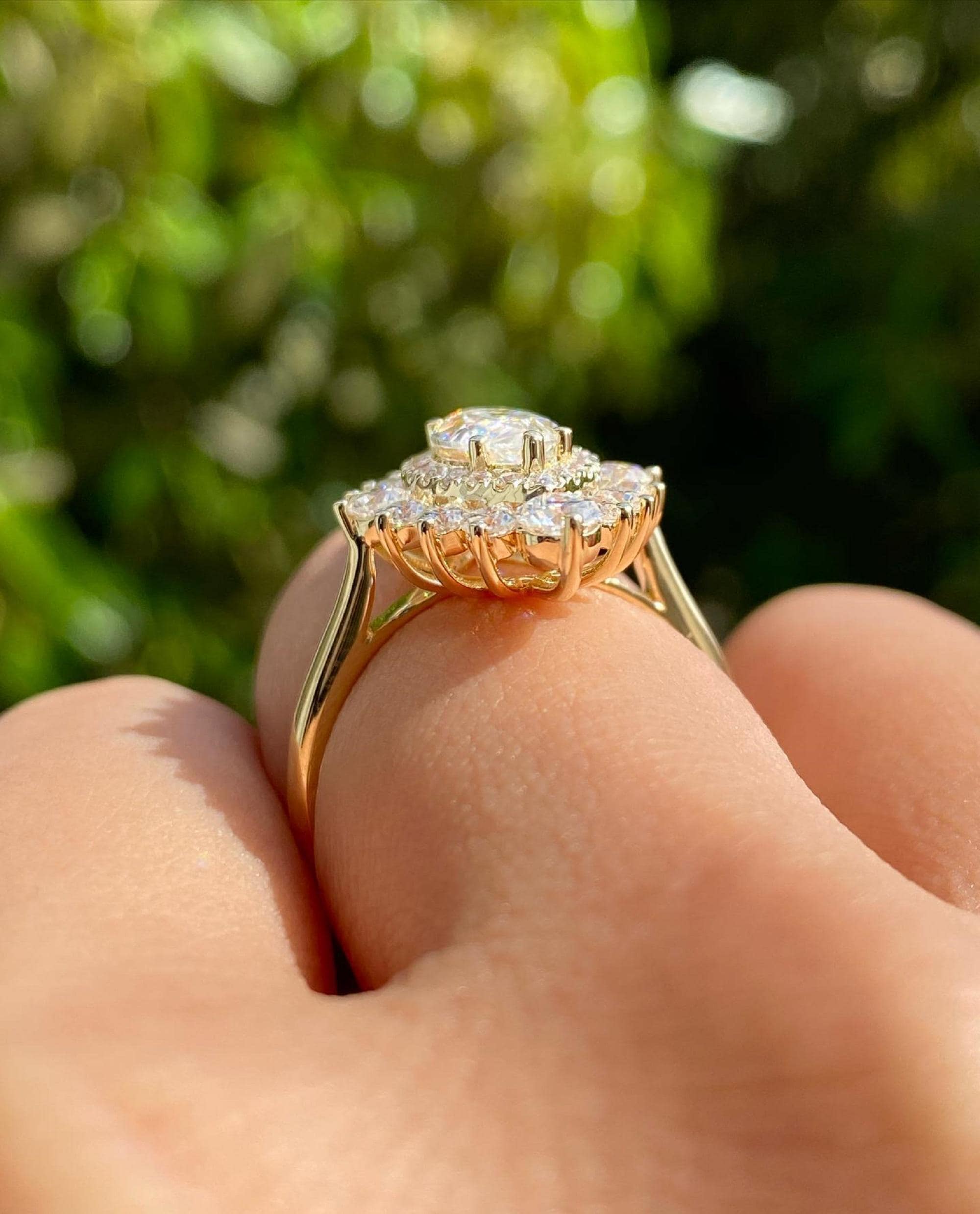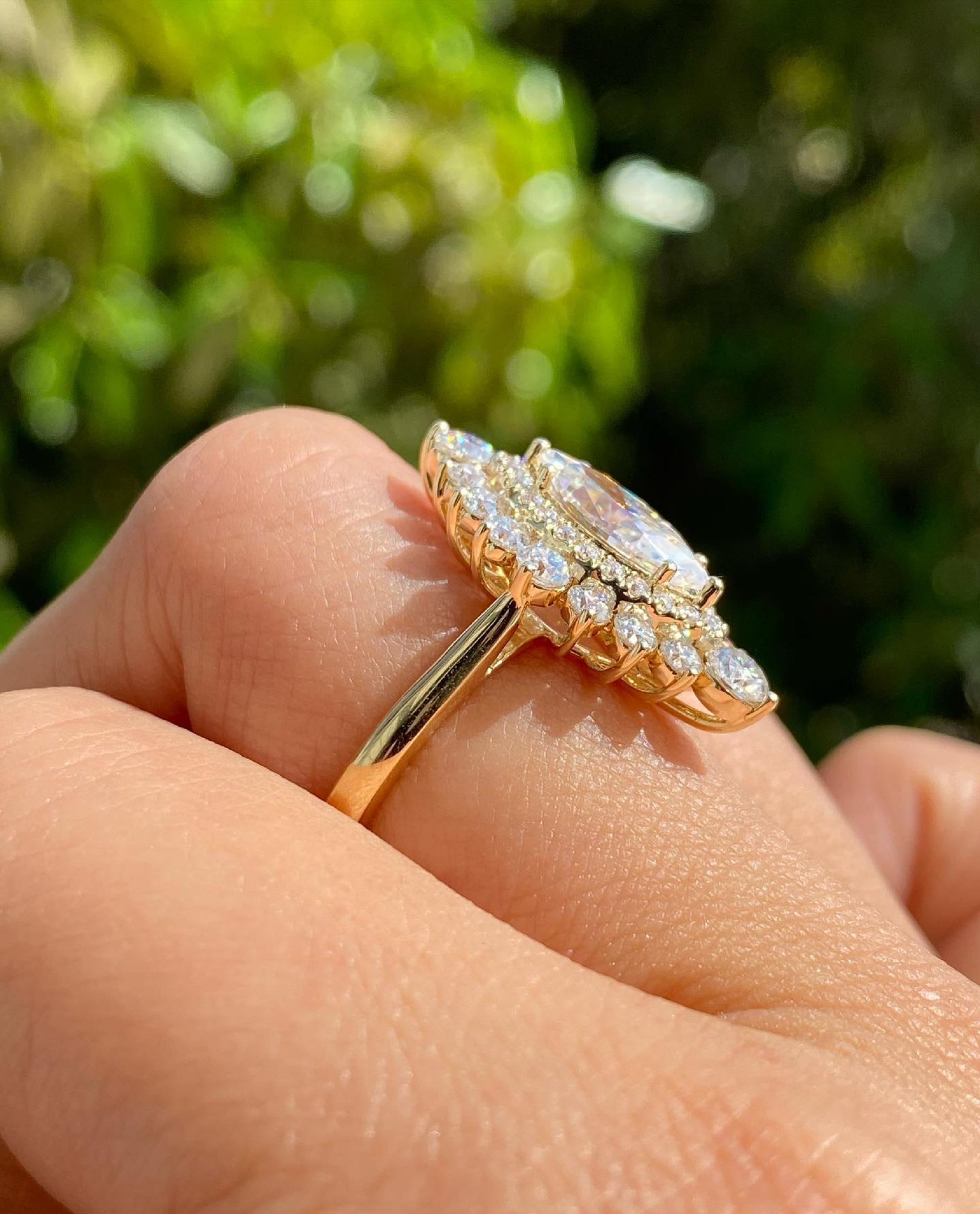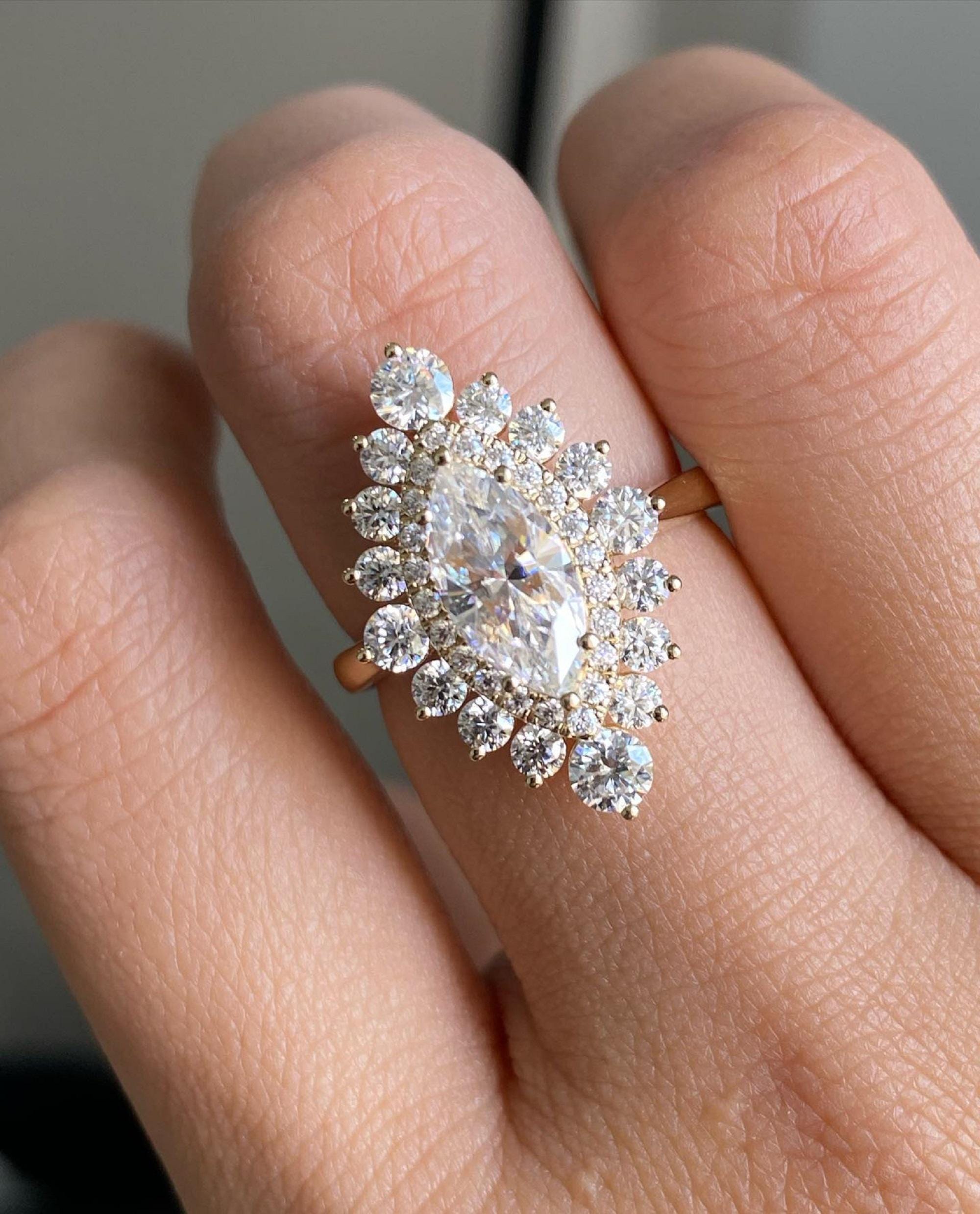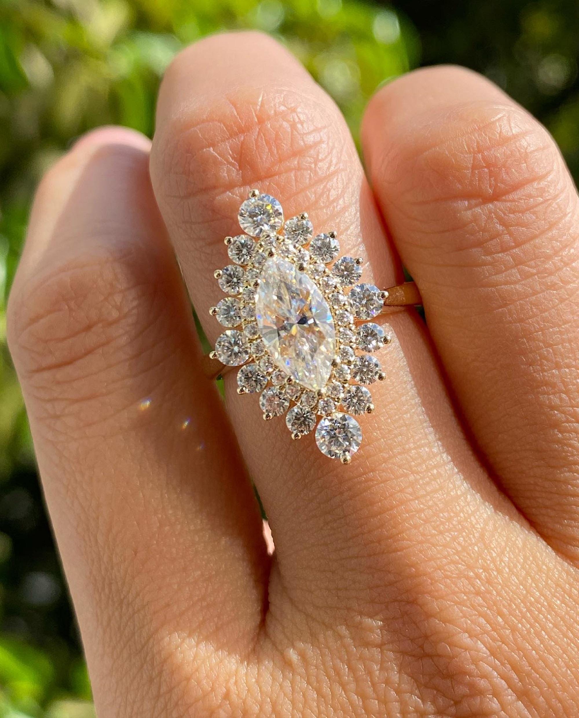 Double Halo Marquise Cut 2 CT Moissanite Ring, Ballerina Diamond Engagement Ring, Cluster Ring In 14K Solid Gold, Starburst Anniversary Ring