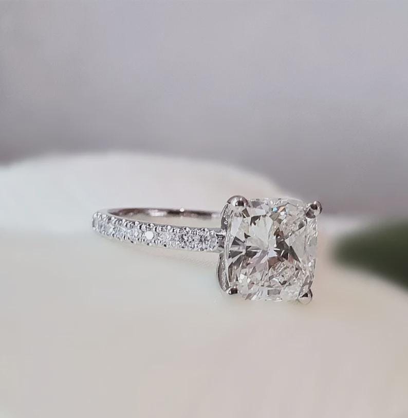 โ€ข Center Stone: 1.5 CT Cushion Cut (Lab Diamond or Moissanite, depending on your shop)