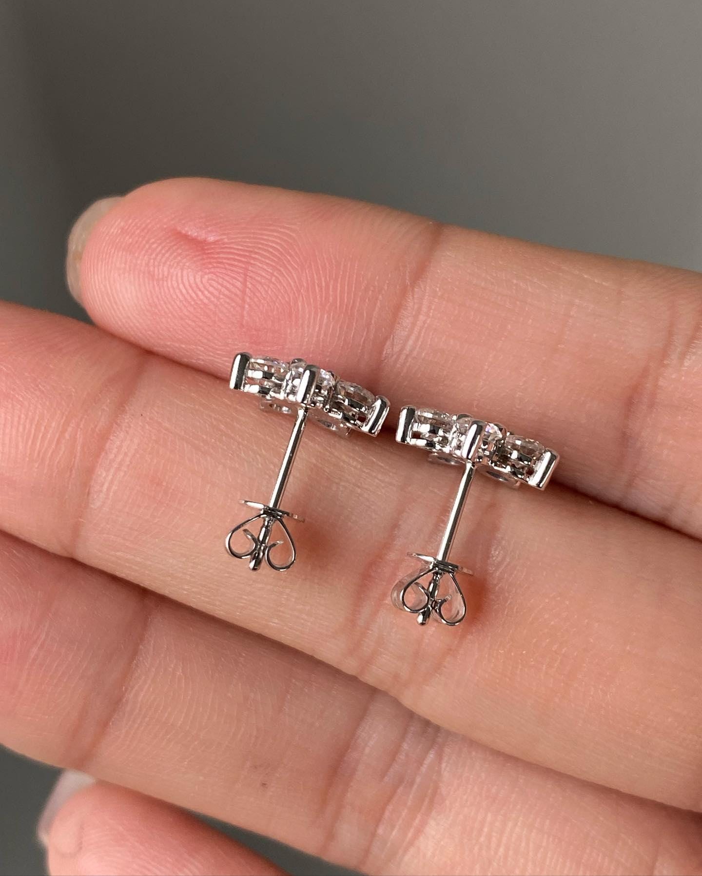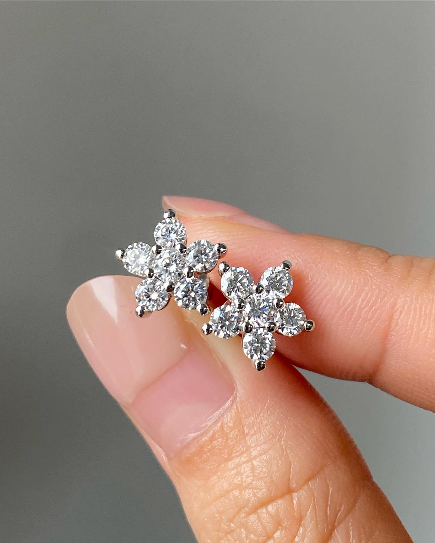 Diamond Flower Cluster Stud Earrings in 14K White Gold, Minimalist Floral Earrings, Dainty Bridal Jewelry, Sparkling Valentines Gift for Her / Dainty Earring / Promise Gift / Diamond Earrings / Fine Jewelry / Valentine Gift / Dainty Earring / Halo Earrings / Classic Earring / Lab Grown Diamond / Wedding Jewelry / Stud Earrings