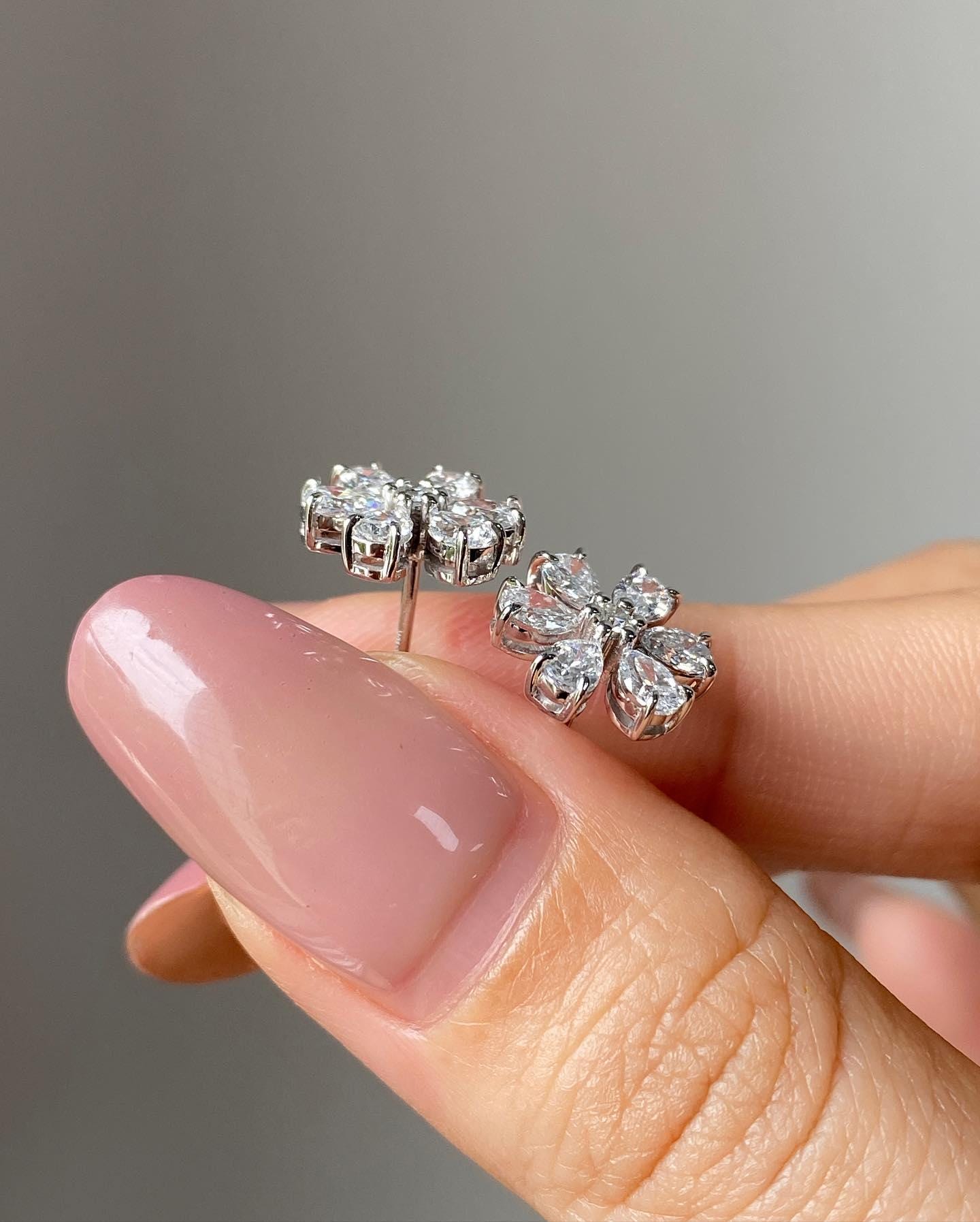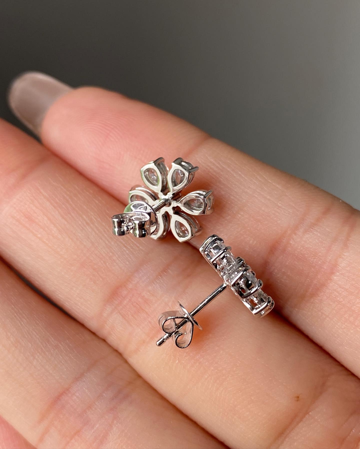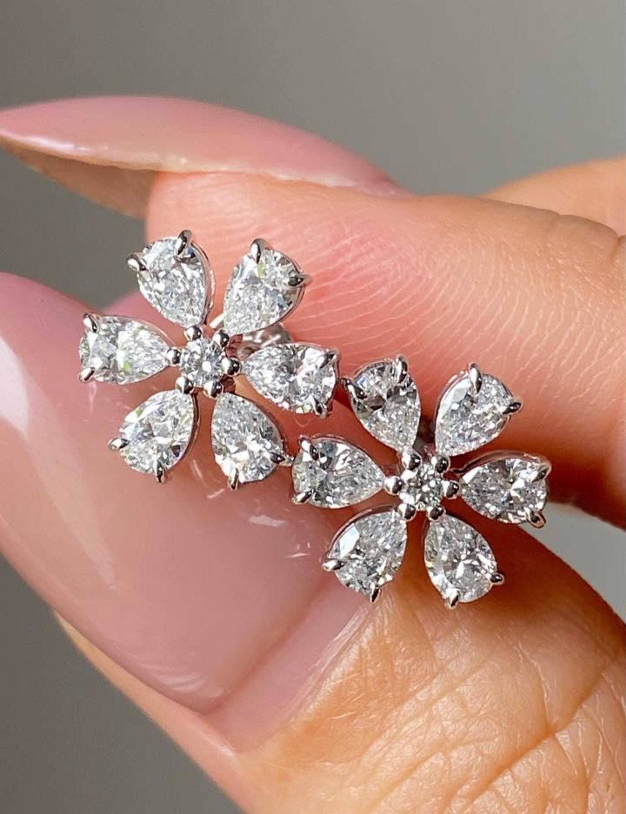 Diamond Flower Stud Earrings in 14k White Gold, Pear Cut Cluster Earrings, Dainty Floral Jewelry, Bridal Gift for Her, Valentines Gift / Dainty Earring / Promise Gift / Diamond Earrings / Fine Jewelry / Valentine Gift / Dainty Earring / Halo Earrings / Classic Earring / Lab Grown Diamond / Wedding Jewelry / Stud Earrings / Flower Earrings