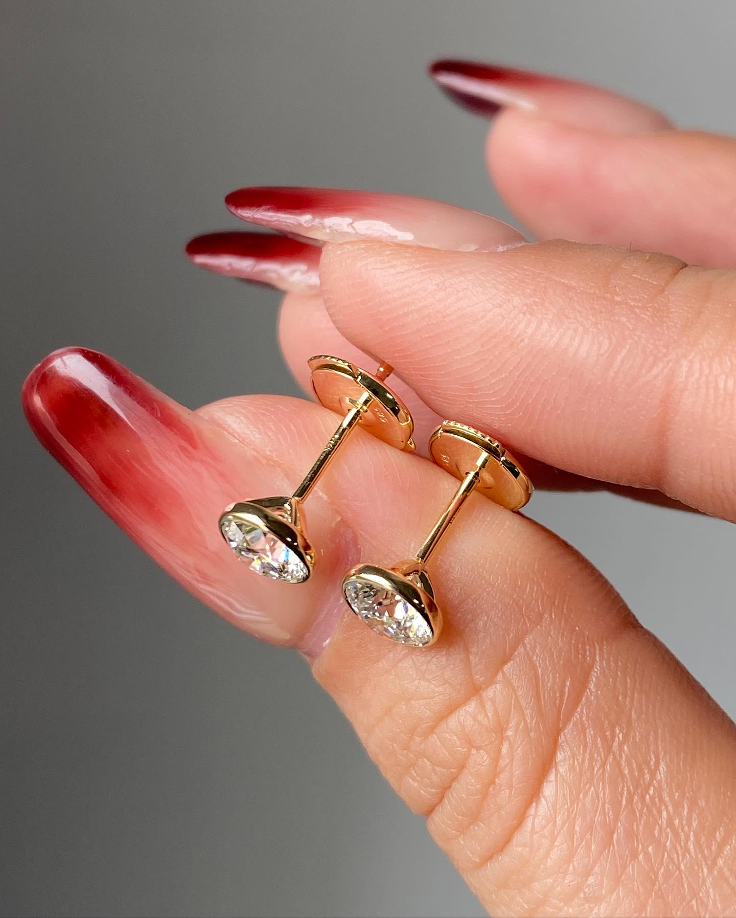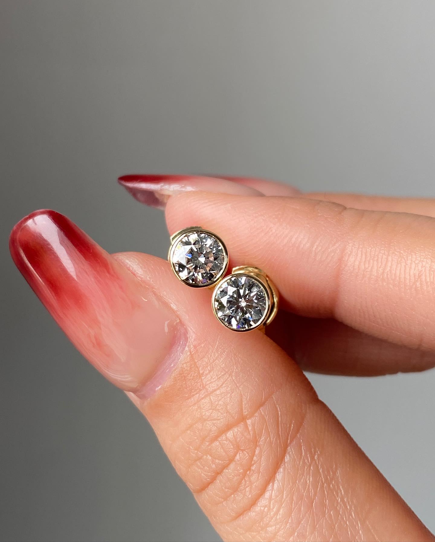 Round Cut Moissanite Solitaire Studs Earrings, 14k Solid Gold Solitaire Bezel Set Earrings, Dainty Stud Earings, Art Deco Promise Ring / Dainty Earring / Promise Gift / Diamond Earrings / Fine Jewelry / Valentine Gift / Bezel Earring / Solitaire Earrings / Classic Earring / Lab Grown Diamond / Wedding Jewelry / Stud Earrings