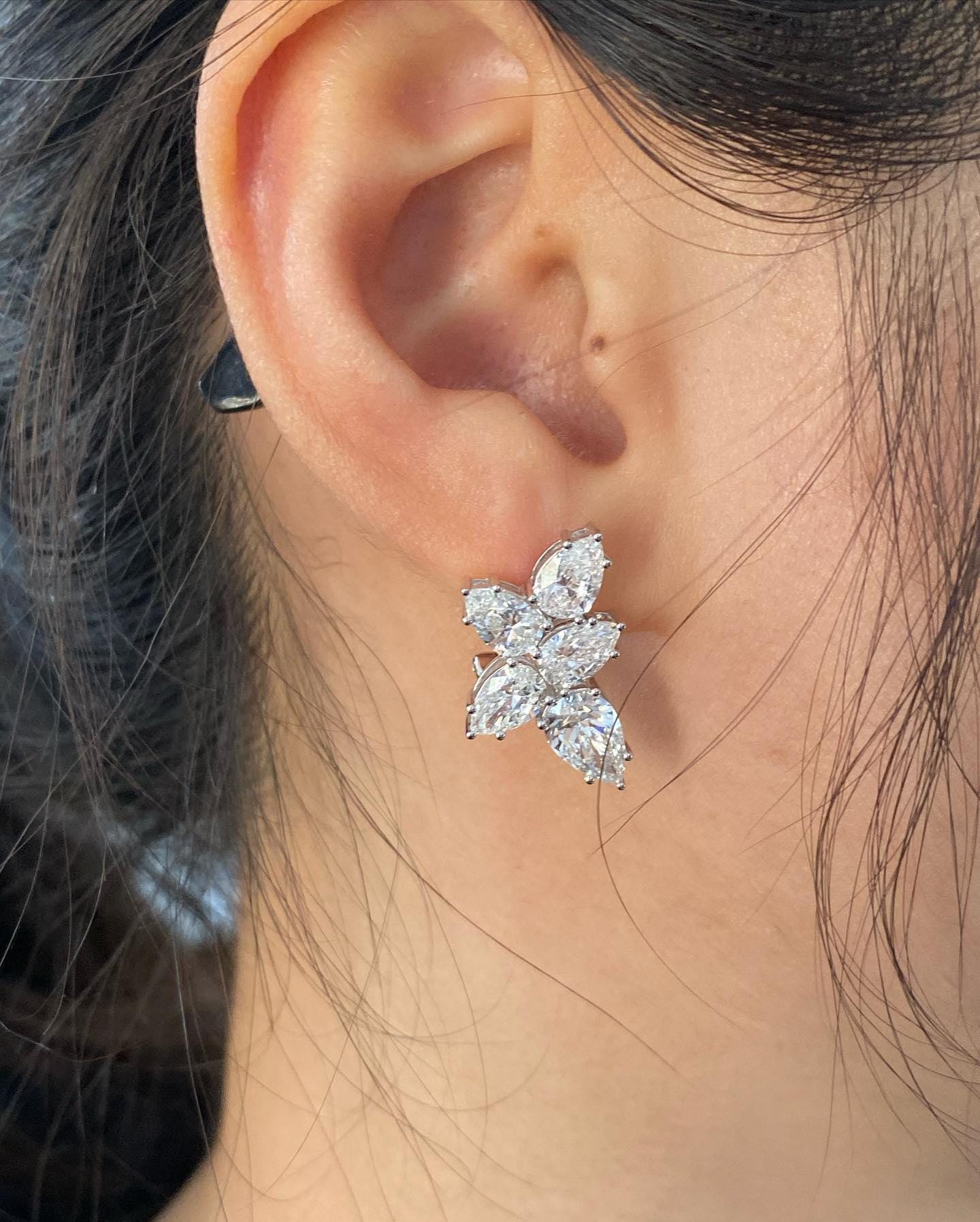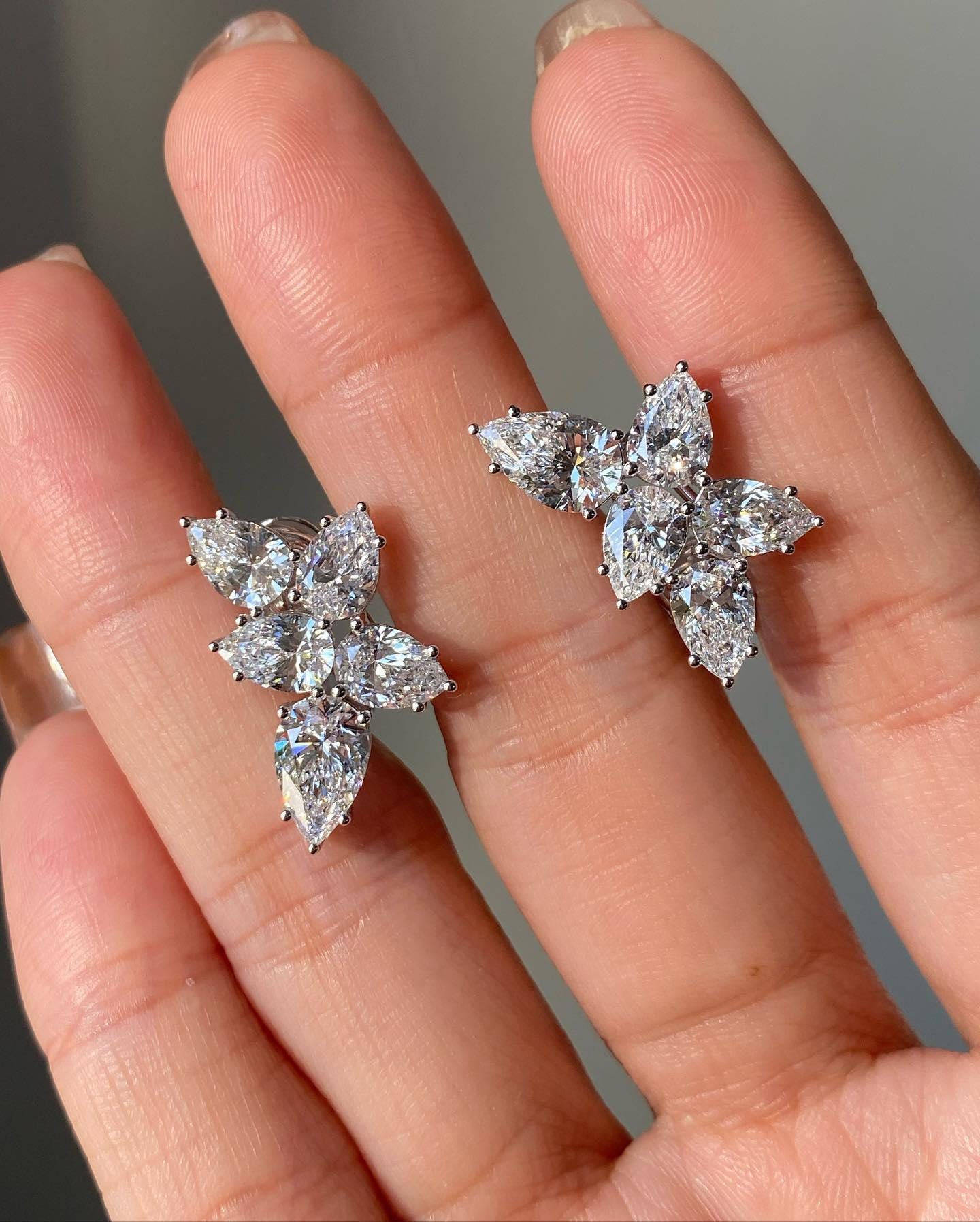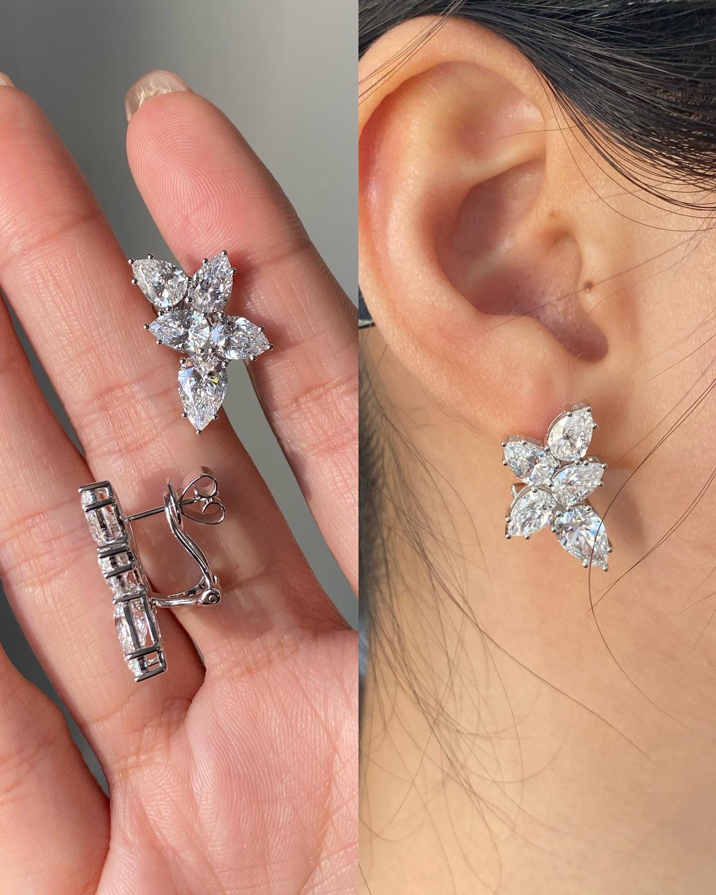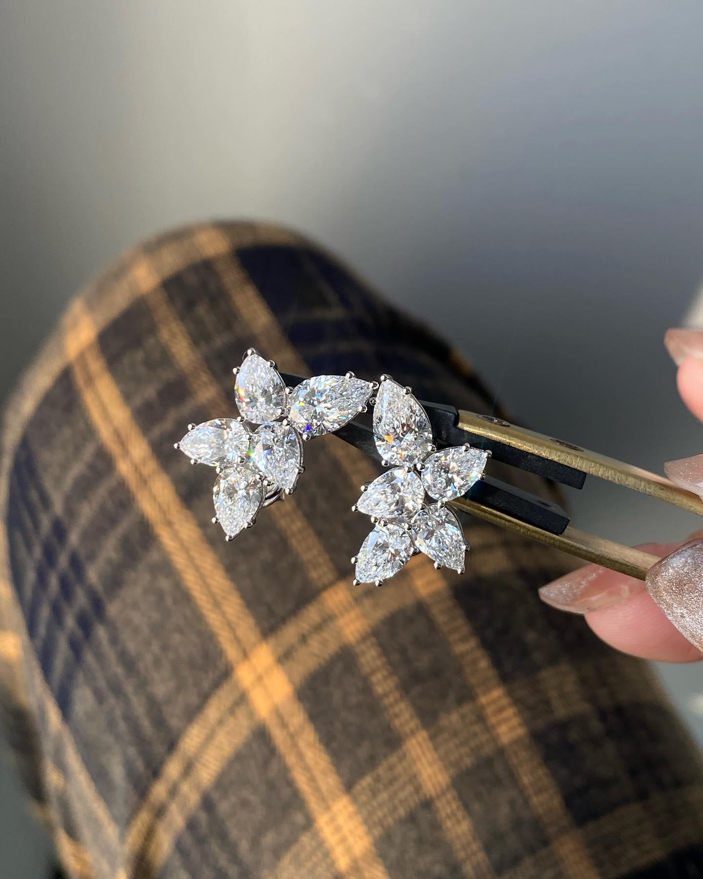 Pear Cut Diamond Cluster Earrings, Teardrop Floral Studs, Bridal Wedding Jewelry, Marquise Art Deco Earrings, Dainty Crystal Statement Studs / Dainty Earring / Promise Gift / Diamond Earrings / Fine Jewelry / Valentine Gift / Dainty Earring / Cluster Earrings / Classic Earring / Lab Grown Diamond / Wedding Jewelry / Stud Earrings