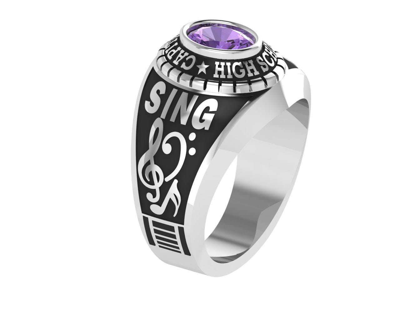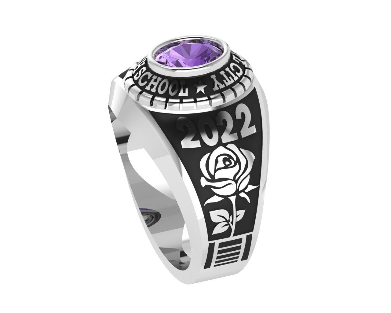 Custom High School Class Ring Sterling Silver Graduation Ring 2022 Personalized School Name Year Purple Stone Senior Ring Gift