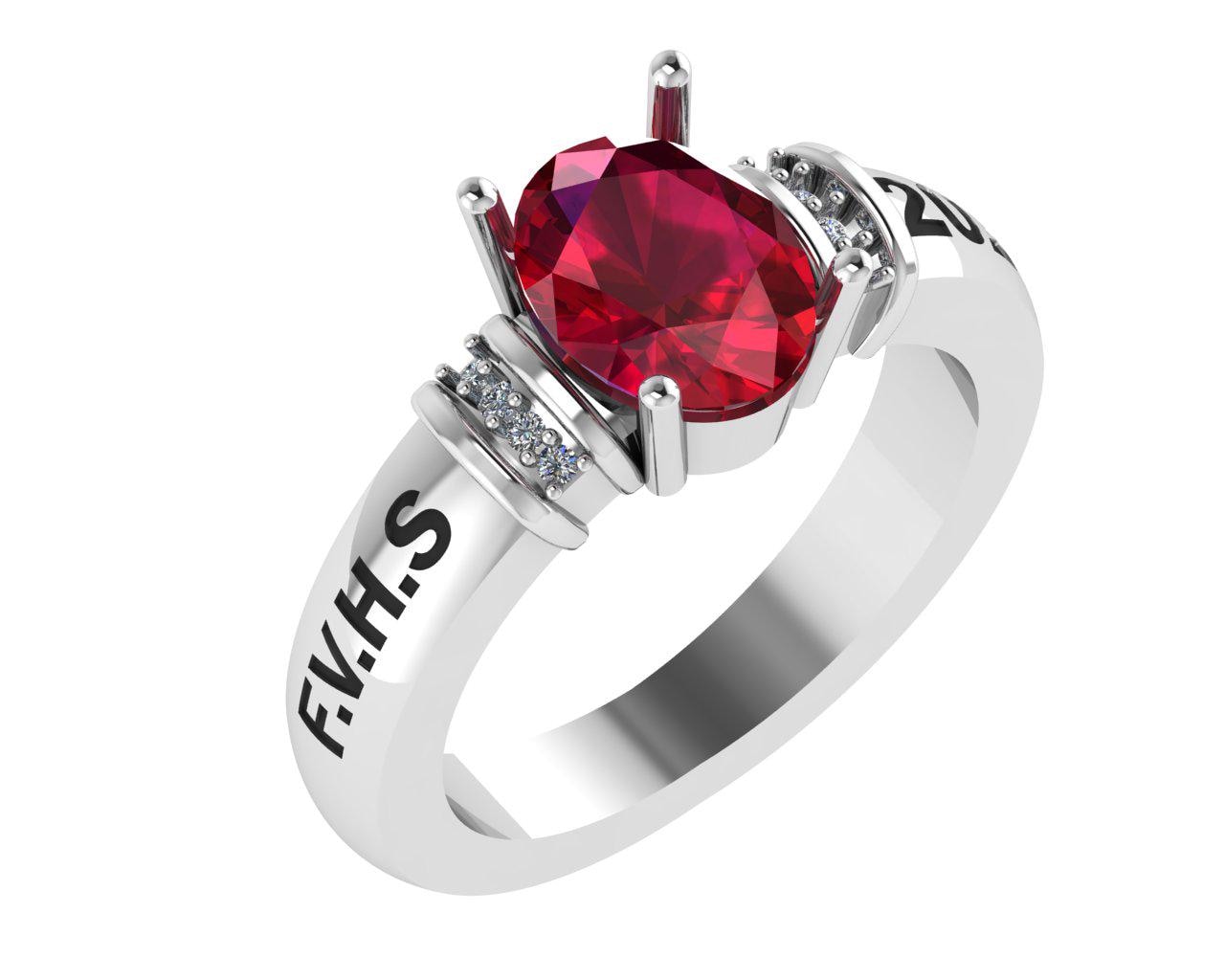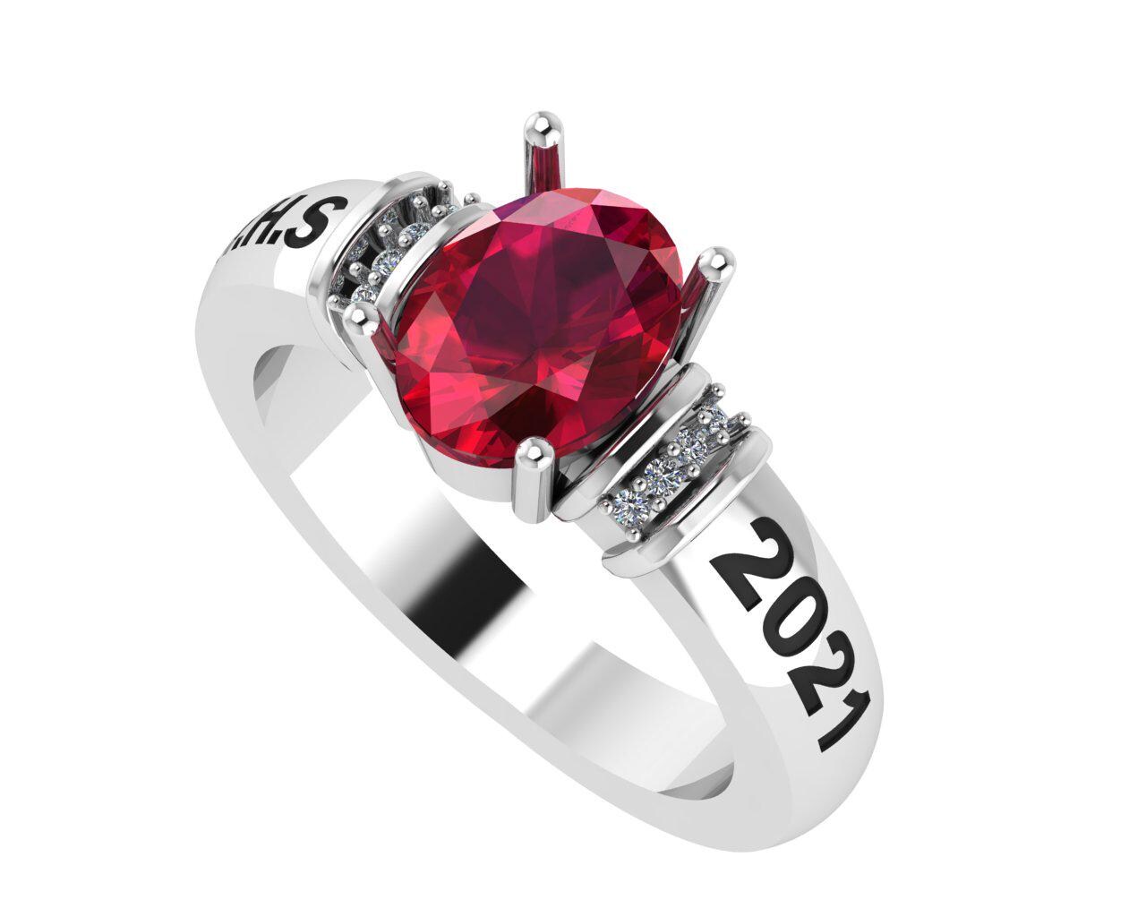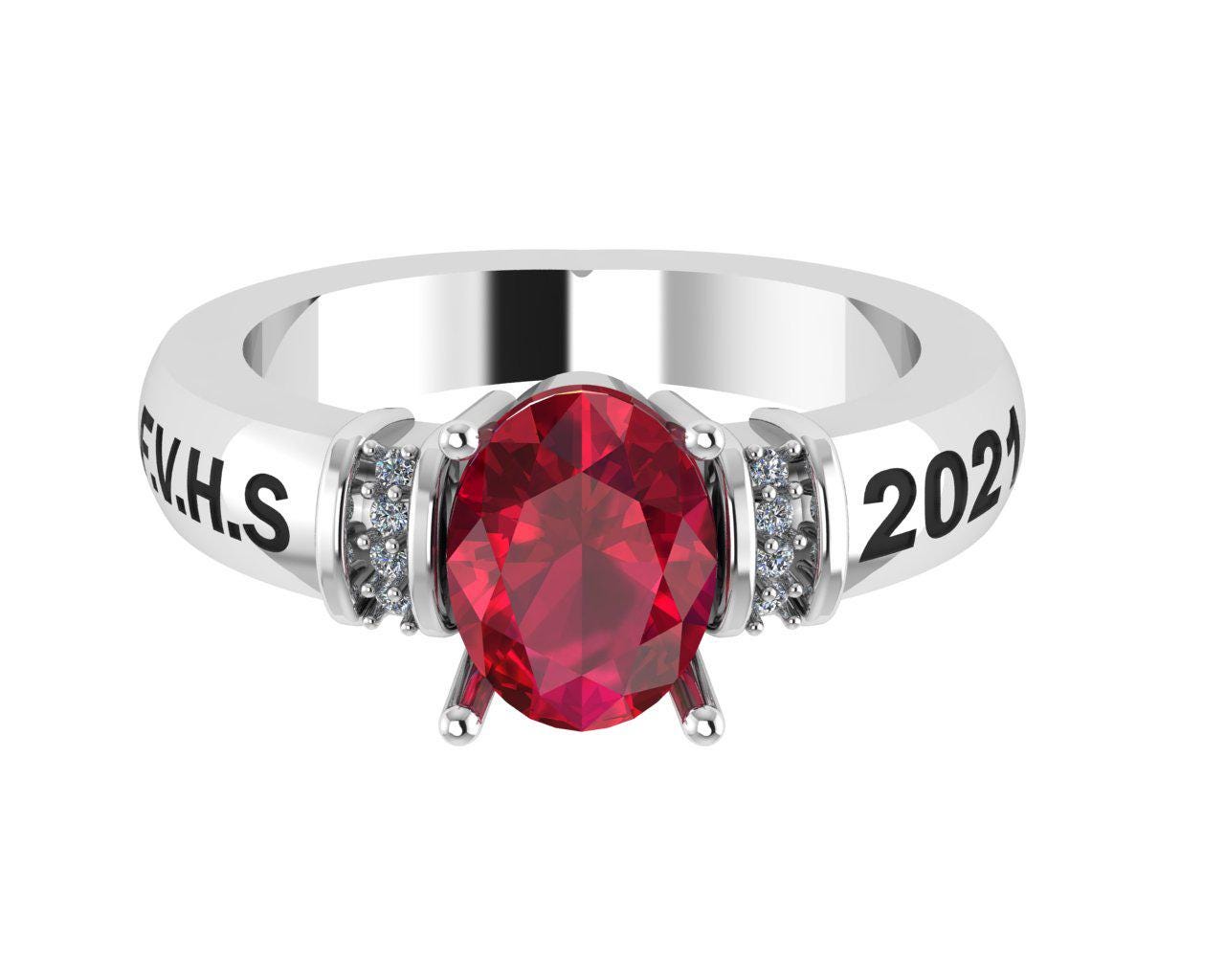 Oval Red Stone High School Class Ring 925 Sterling Silver | Personalized School Initial & Year Ring | Graduation Gift
