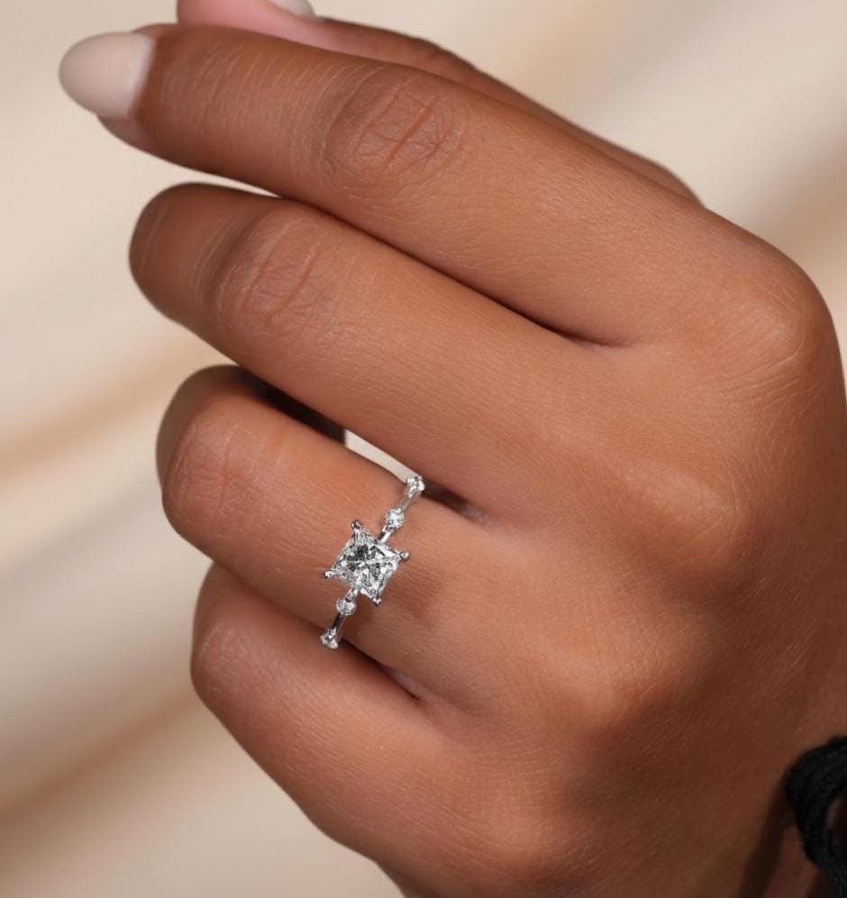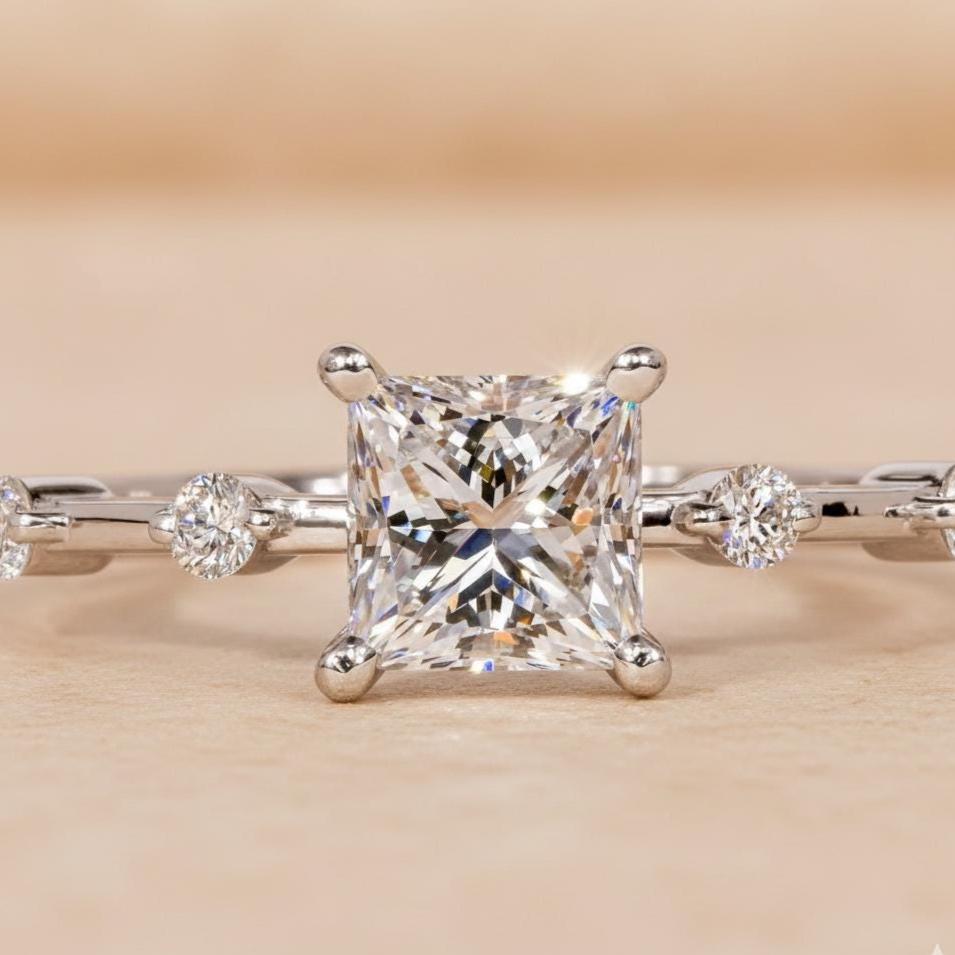 1.80 CT Princess Cut Engagement Ring Minimalist 14k Gold Lab Grown Diamond Ring Bridal Ring Modern Moissanite Promise Anniversary Gift