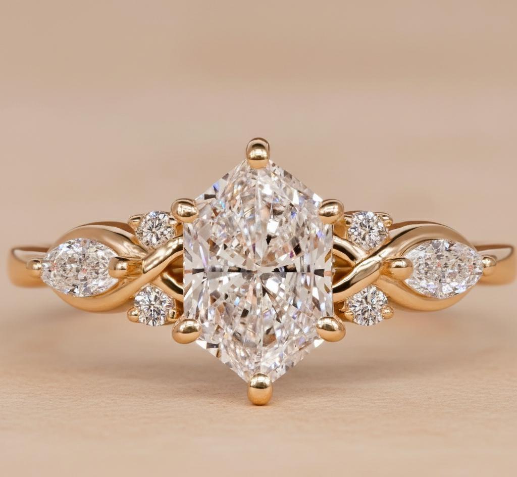 1.80 CT Hexagon Cut Moissanite Engagement Ring Gold Twisted Band Lab Grown Diamond Ring Vintage Inspired Bridal Promise Anniversary Gift / Solitaire Ring / Diamond Ring / Marquise Cut Ring / 14k Gold Engagement Ring / Lab Grown Diamond Ring / Yellow Gold Ring / Marquise Solitaire Ring / Marquise Lab Grown Ring / Handcrafted Ring / Sterling Silver Ring