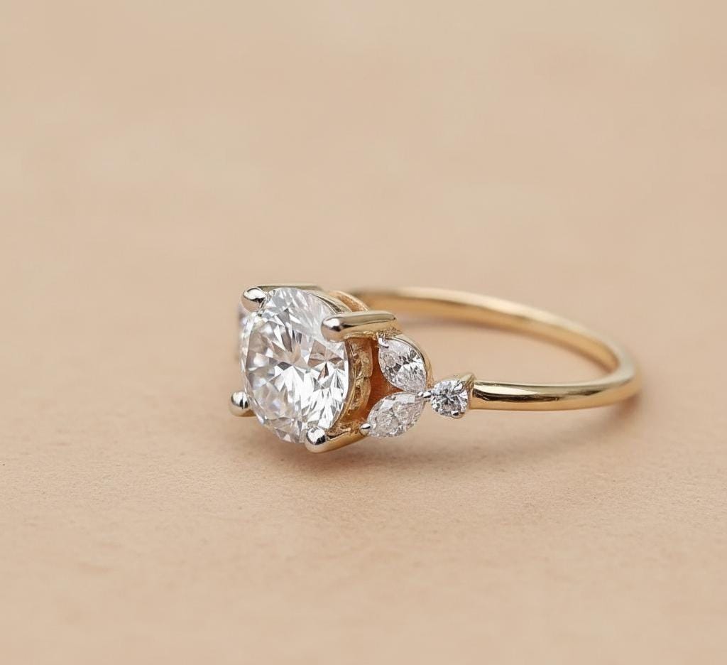 2 CT Round Moissanite Engagement Ring Delicate Lab Grown Diamond Bridal Ring 14k Solid Yellow Gold Wedding Ring Anniversary Gift for Her