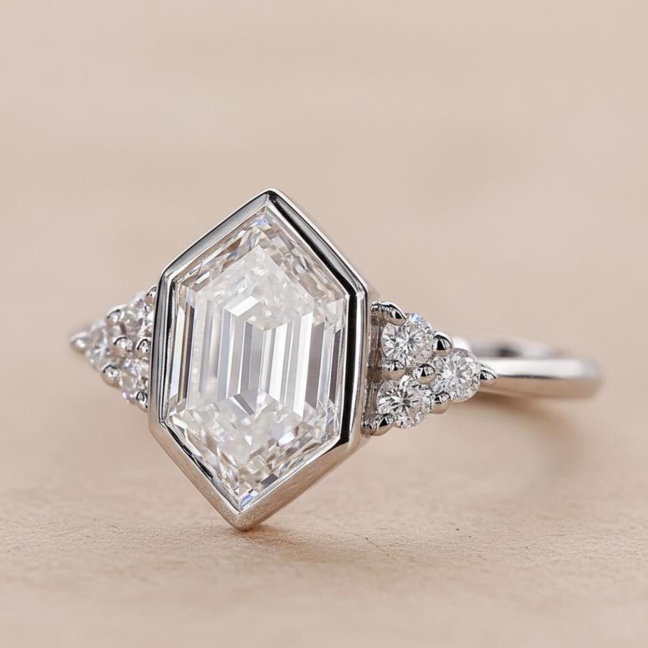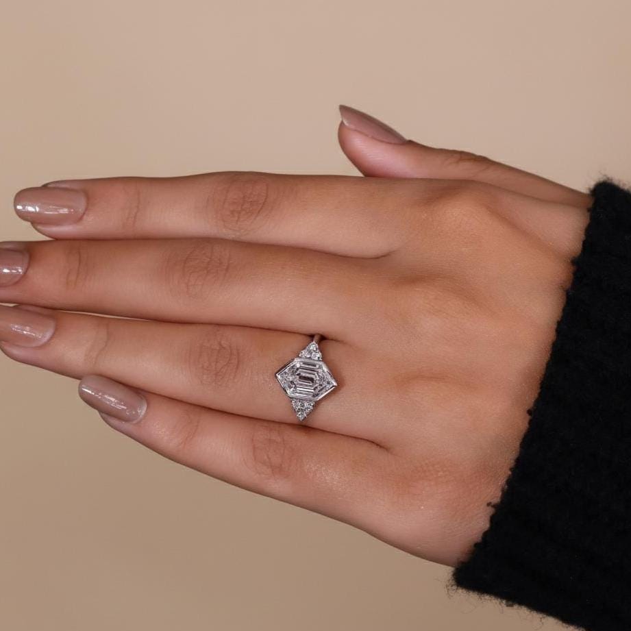 2 CT Hexagon Cut Moissanite Engagement Ring Bezel Set Solid White Gold Bridal Ring Daily Wear Lab Grown Diamond Wedding Promise Ring / Three Stone Ring / Prong Setting Ring / Handmade Ring / Dainty Ring / Promise Ring / Anniversary Gift / Valentine Gift / Classic Ring / White Gold Ring / Valentine Gift / Diamond Ring