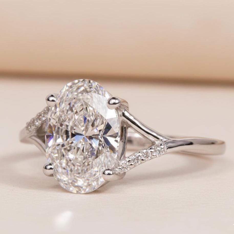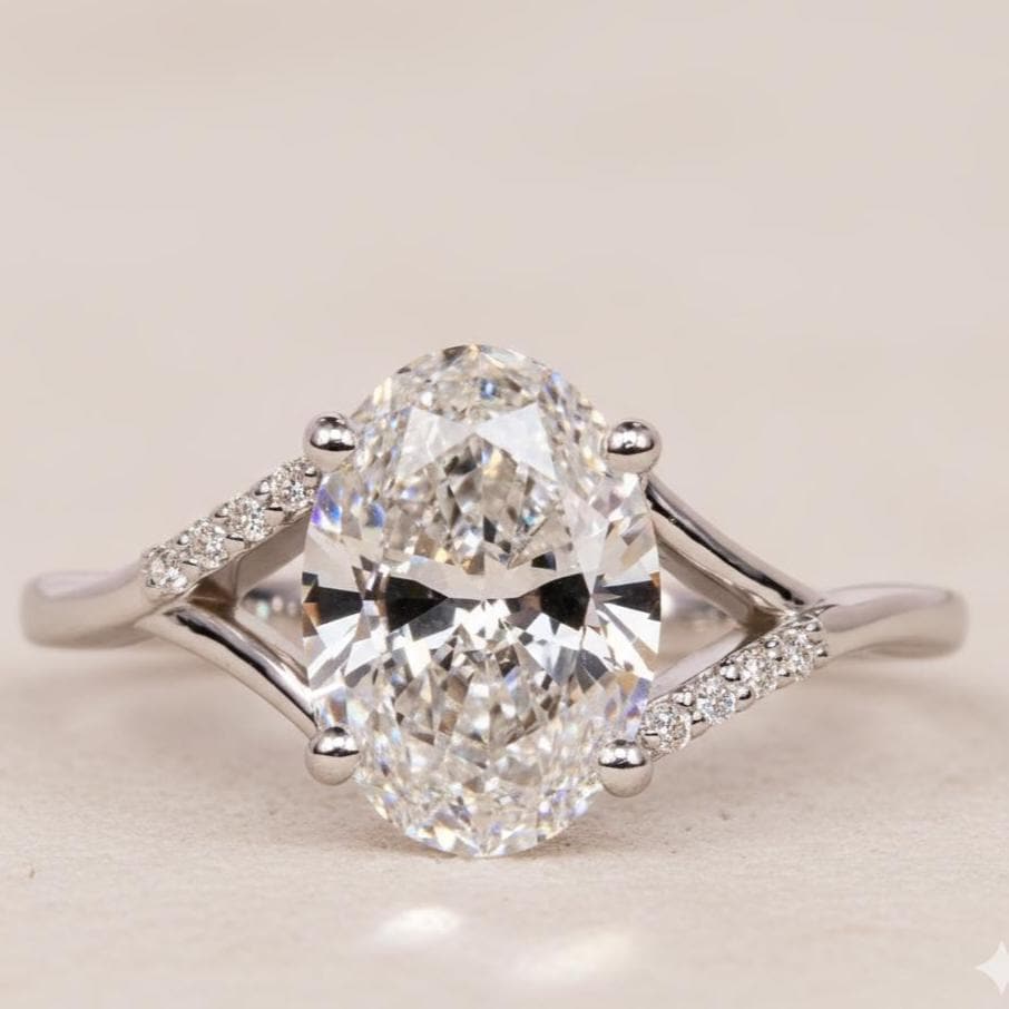 2.50 CT Oval Moissanite Engagement Ring Pave Band White Gold Ring Solitaire Lab Gown Diamond Alternative Bridal Ring Anniversary Gift / Three Stone Ring / Prong Setting Ring / Handmade Ring / Dainty Ring / Promise Ring / Anniversary Gift / Valentine Gift / Classic Ring / White Gold Ring / Valentine Gift / Diamond Ring