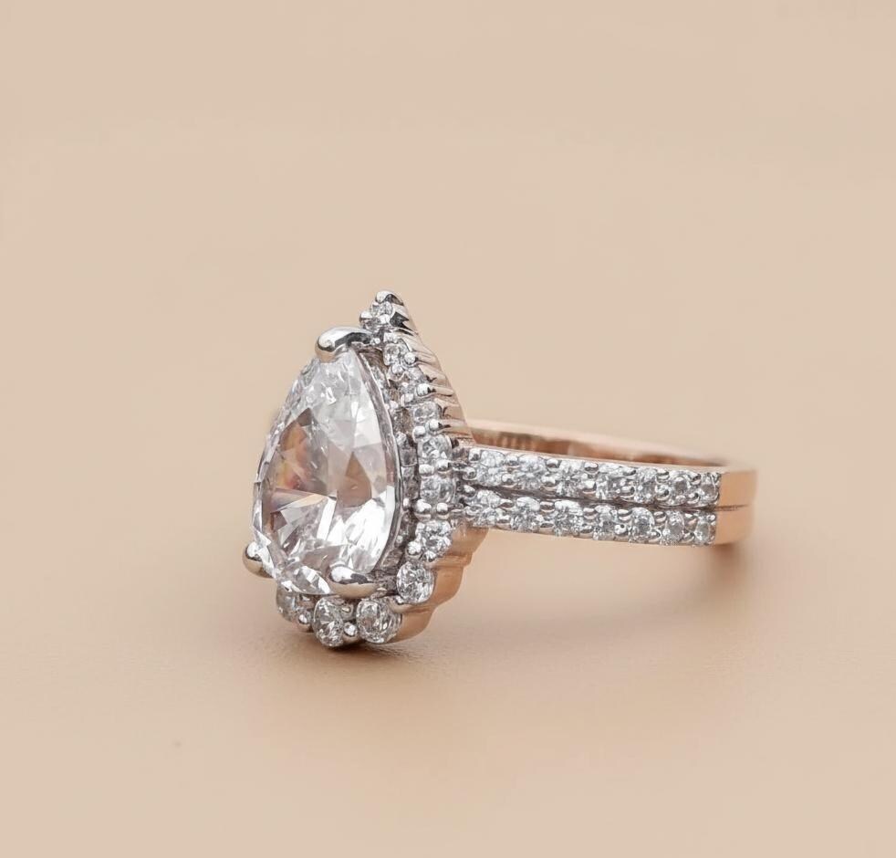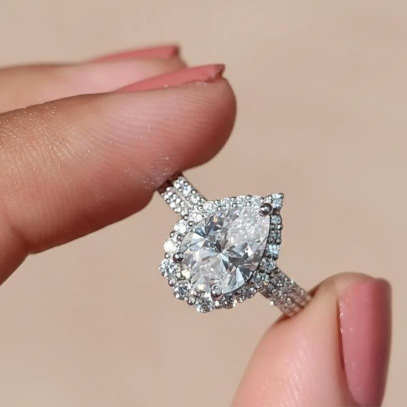 1.80 CT Pear Lab Grown Diamond Engagement Ring, 14K White Gold Teardrop Moissanite Halo Ring Set Unique Bridal Set Anniversary Gift for Her / Solitaire Ring / Diamond Ring / Gold Bezel Ring / Wedding Ring / Engagement Ring / 14k Gold Ring / Lab Grown Diamond / Pear Cut Ring / Birthday Gift / Proposal Ring / Bridal Ring / Pear Cut Ring
