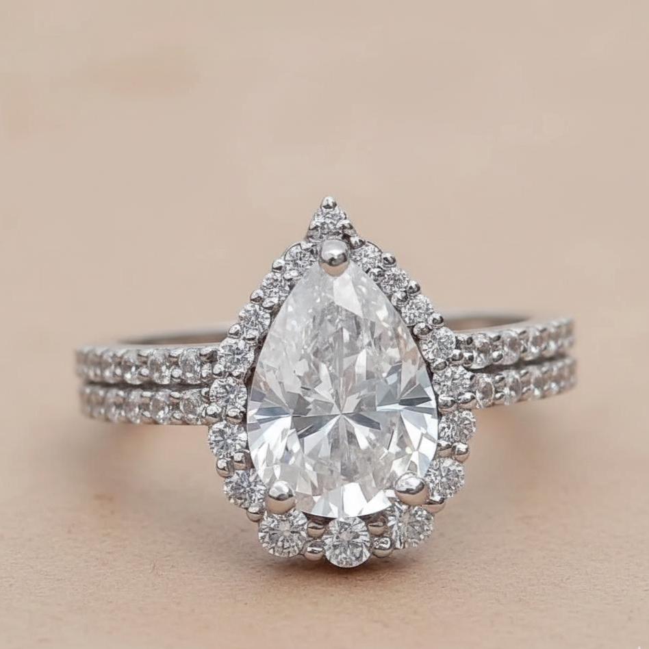 1.80 CT Pear Lab Grown Diamond Engagement Ring, 14K White Gold Teardrop Moissanite Halo Ring Set Unique Bridal Set Anniversary Gift for Her