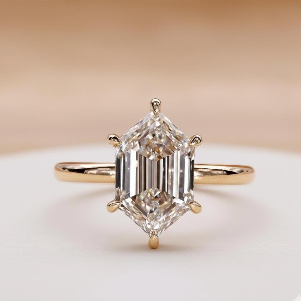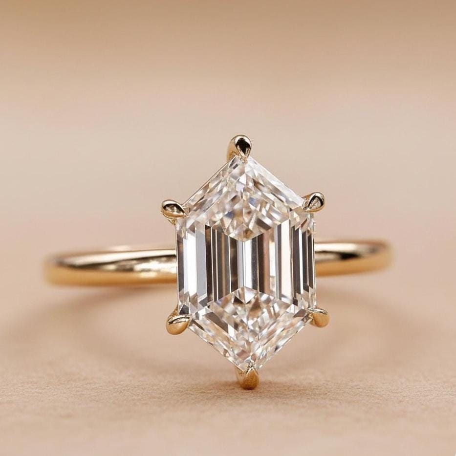 2 CT Hexagon Lab Grown Diamond Engagement Ring 14K Rose Gold Vintage Bridal Handmade Daily Wear Proposal Ring Moissanite Art Deco Gift/ Solitaire Ring / Diamond Ring / Gold Ring / Wedding Ring / Engagement Ring / 14k Gold Ring / Lab Grown Diamond / Pear Cut Ring / Birthday Gift / Proposal Ring / Bridal Ring / Pear Cut Ring