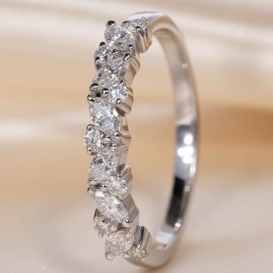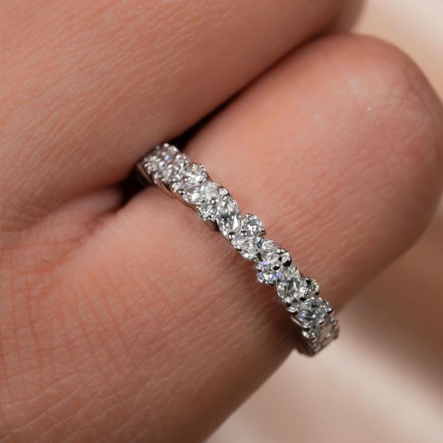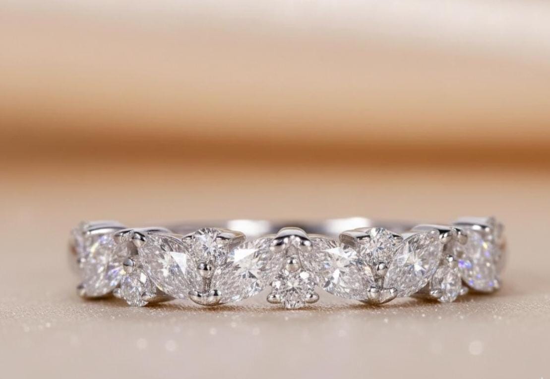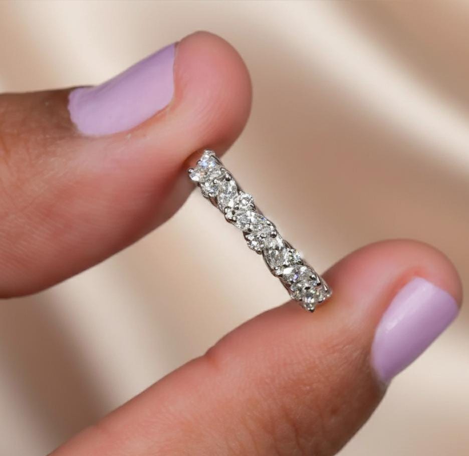 1 CT Marquise Moissanite Eternity Band Dainty Wedding Ring Stackable Lab Grown Diamond Look Anniversary Band Minimal Bridal Ring For Women / solitaire Ring / Prong Setting Ring / Handmade Ring / Dainty Ring / Promise Ring / Anniversary Gift / Valentine Gift / Classic Ring / White Gold Ring / Valentine Gift / Diamond Ring