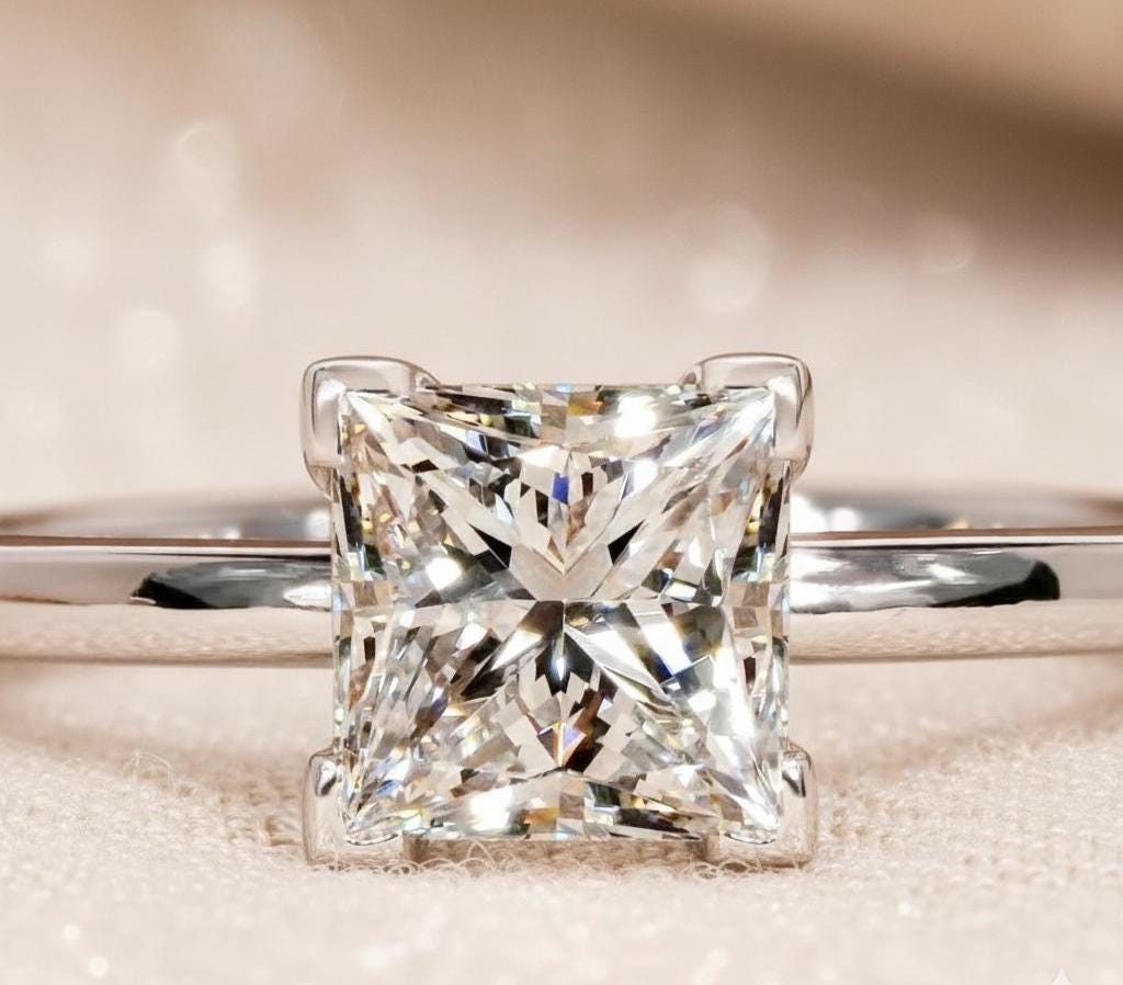 1.50 CT Princess Cut Lab Grown Diamond Engagement Ring 14K Gold Solitaire Wedding Ring Everyday Wear Moissanite Anniversary Gift for Her / Three Stone Ring / Prong Setting Ring / Handmade Ring / Dainty Ring / Promise Ring / Anniversary Gift / Valentine Gift / Classic Ring / White Gold Ring / Valentine Gift / Diamond Ring