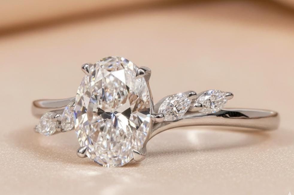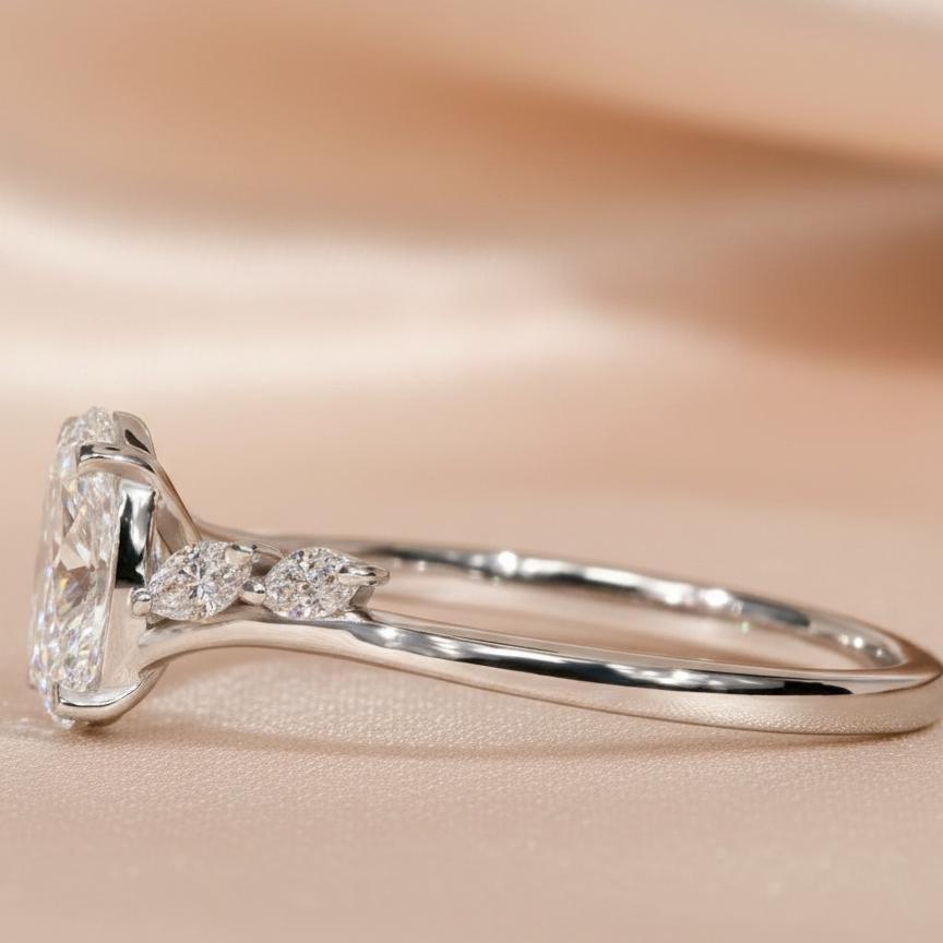 2 CT Oval Moissanite Engagement Ring with Marquise Side Stones 14K Gold Five Stone Wedding Ring Lab Grown Diamond Anniversary Gift for Her / Five Stone Ring / Prong Setting Ring / Handmade Ring / Dainty Ring / Promise Ring / Anniversary Gift / Valentine Gift / Classic Ring / White Gold Ring / Valentine Gift / Diamond Ring