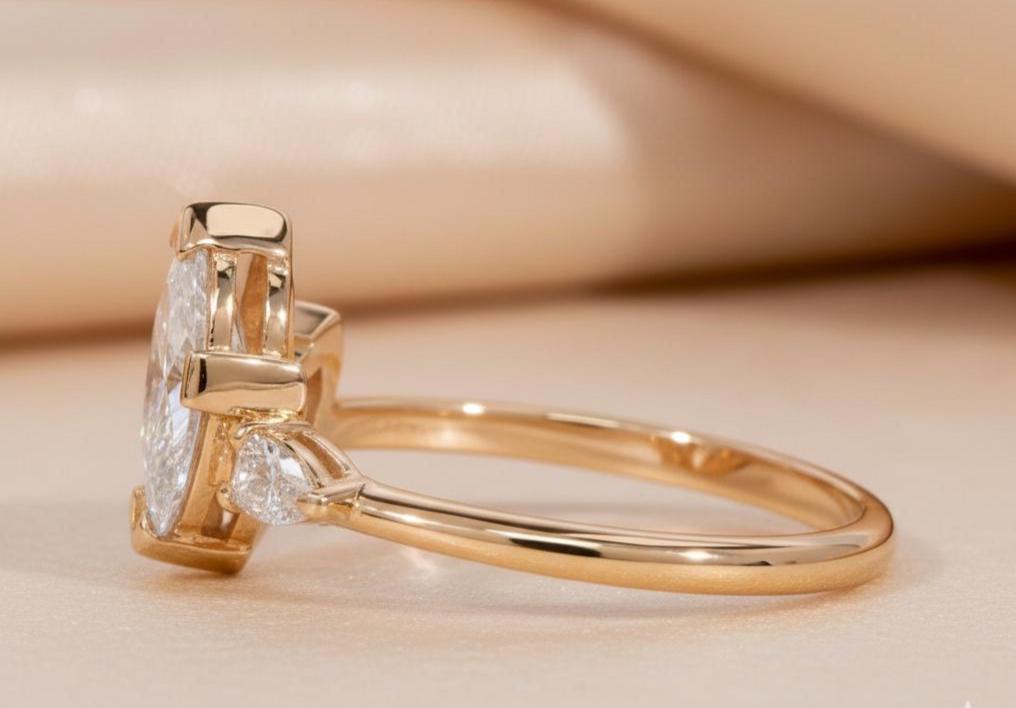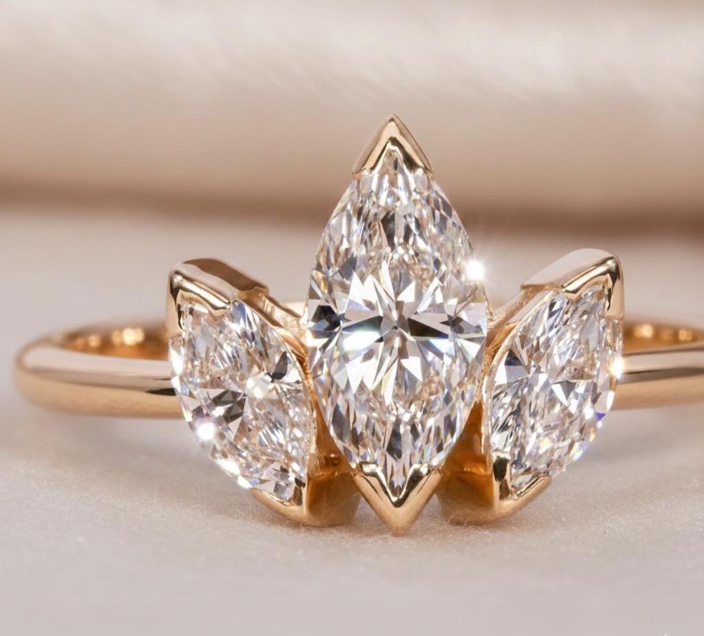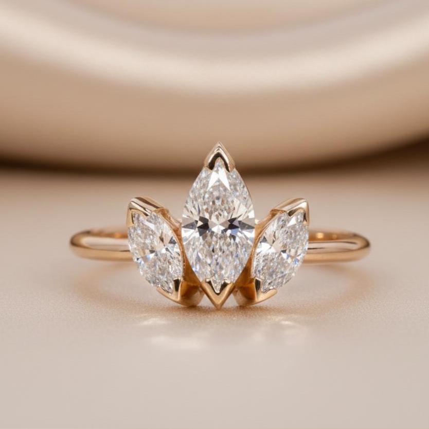 2.5 CT Marquise Cut Lab Grown Diamond Engagement Ring Three Stone Ring in 14K Gold Unique Lotus Flower Bridal Trio Moissanite Promise Ring / Three Stone Ring / Prong Setting Ring / Handmade Ring / Dainty Ring / Promise Ring / Anniversary Gift / Valentine Gift / Classic Ring / White Gold Ring / Valentine Gift / Diamond Ring