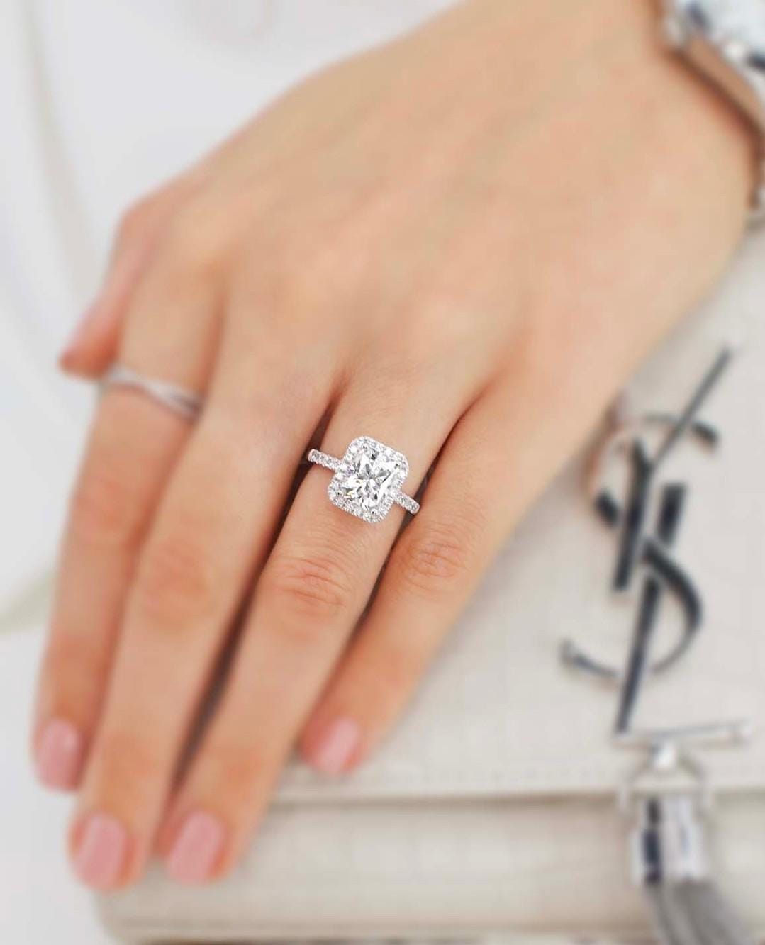 2 Ct Radiant Cut Moissanite Engagement Ring Hidden Halo Pave Band White Gold Solitaire Ring Lab Grown Diamond Alternative Wedding Ring / Art Deco Ring / Engagement Ring / Wedding Ring / Diamond Ring / Handmade Ring / Fine Jewelry / Spiral Ring / Rings for Women / Stunning Ring / Personalized Gift / Promise Ring / Proposal Ring / Round Pave Ring / Birthday Gift / Unique Ring / Gift for Girlfriend / Pear Lab Diamond / Lab Grown Diamond