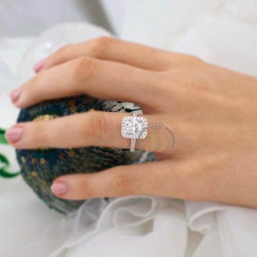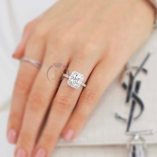 2 Ct Radiant Cut Moissanite Engagement Ring Hidden Halo Pave Band White Gold Solitaire Ring Lab Grown Diamond Alternative Wedding Ring